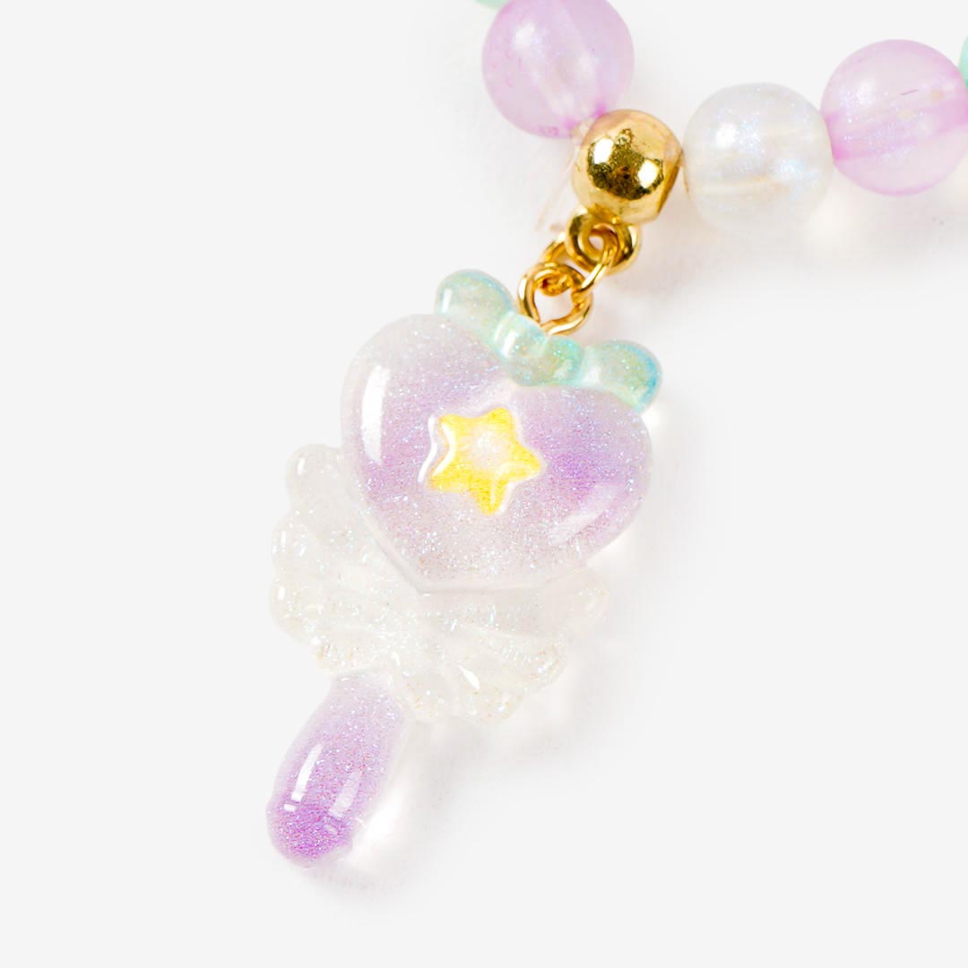 Complete your kawaii outfit when you wear this super cute bracelet! It has pastel-colored beads and a charm that looks like a heart-shaped magic wand.