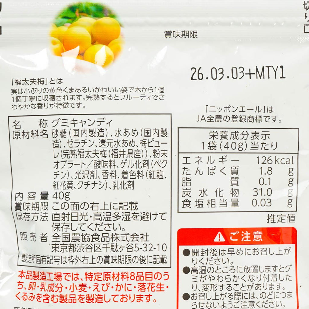 Indulge in this special pack of gummy candy! Made to represent the Fukui Prefecture in Japan, these gummies taste just like fully ripe Fukudayu plums. They're the perfect treat for anyone who wants a better taste of Japan!