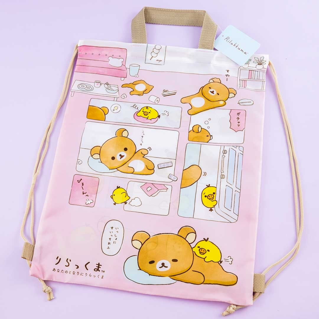 Go on trips with this super kawaii two-way bag! It's covered in prints of Rilakkuma having a lazy day at home. You can use it either as a tote bag or as a backpack. This bag is also perfect for bringing your gym clothes!
