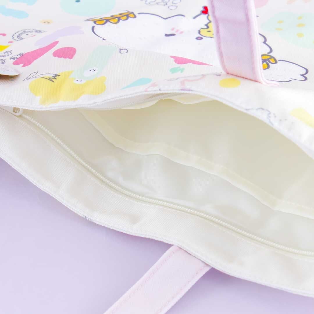 Keep your textbooks and notebooks inside this super cute shoulder bag! It features Cogimyun the flour dough character with colorful clouds and doodles. This kawaii zippered bag has inner pockets for your small trinkets.