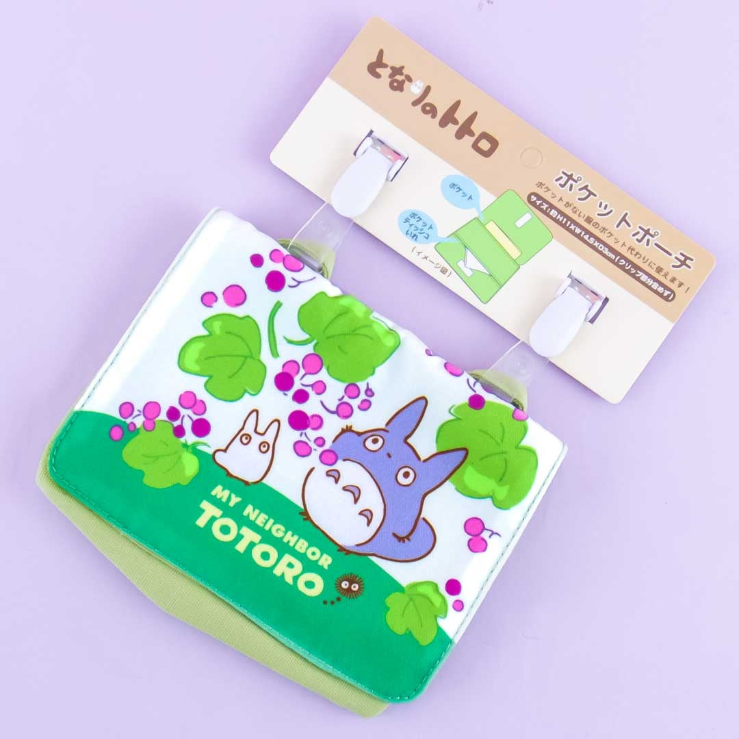 This super kawaii detachable pocket features prints of characters from "My Neighbor Totoro" looking up at berries. It has two compartments for storage and an adhesive tape closure to keep your things safe. You can use attach this pocket to your trouser or skirt with its transparent clips.