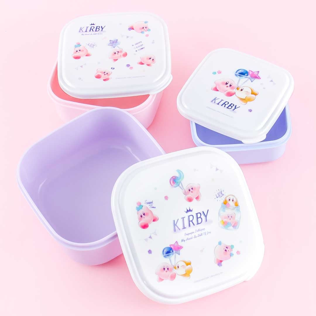Pack your favorite meals inside this super cute bento box set featuring prints of Kirby playing with lollipops and candy! These bento boxes have gone through antibacterial processing which helps hinder microbes. You can microwave meals in these lunch boxes as long as you remove the lid! It's not recommended to clean them in the dishwasher and dryer.