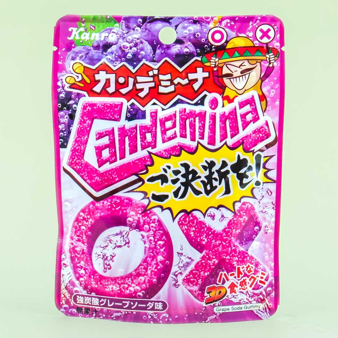 This resealable pack of gummy candies has a strong grape soda flavor and is coated with super sour powder! Have fun chewing on these o-shaped and x-shaped gummies!