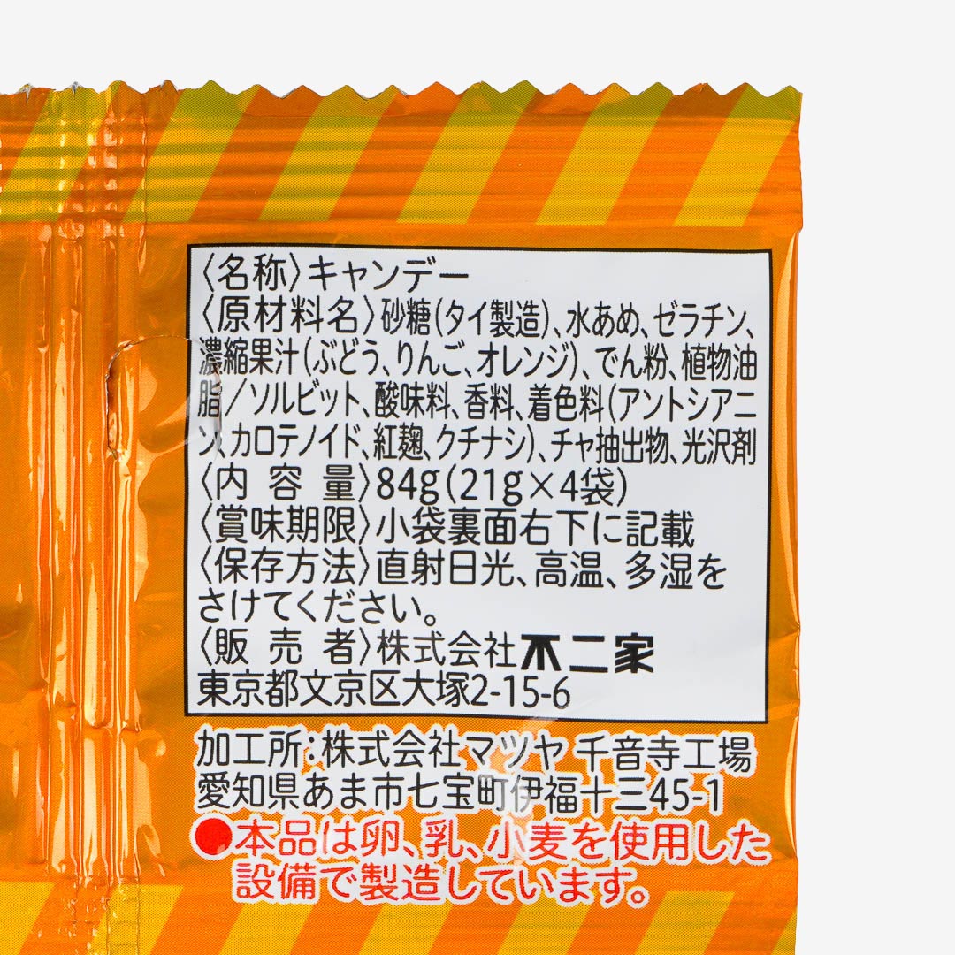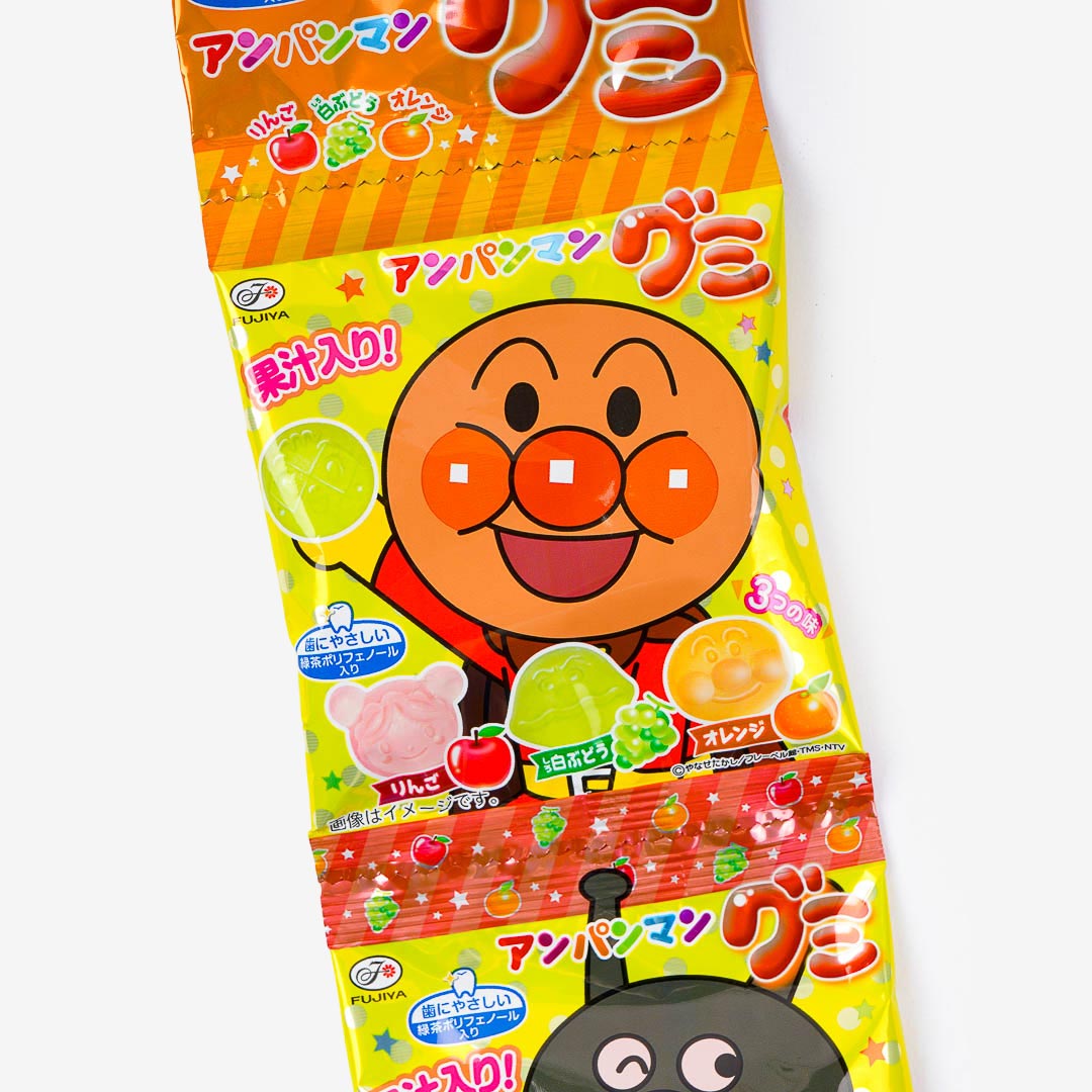 Anpanman is here for the rescue! Anpanman is one of the most popular anime series among children in Japan. This set includes four small packages full of tasty gummies, shaped as heads of the characters of Anpanman and his friends. These candies are made by Fujiya, one of the candy manufacturers loved by Japanese. The set has three different fresh tastes: orange, grape and apple! So sweet!