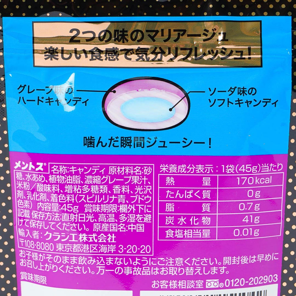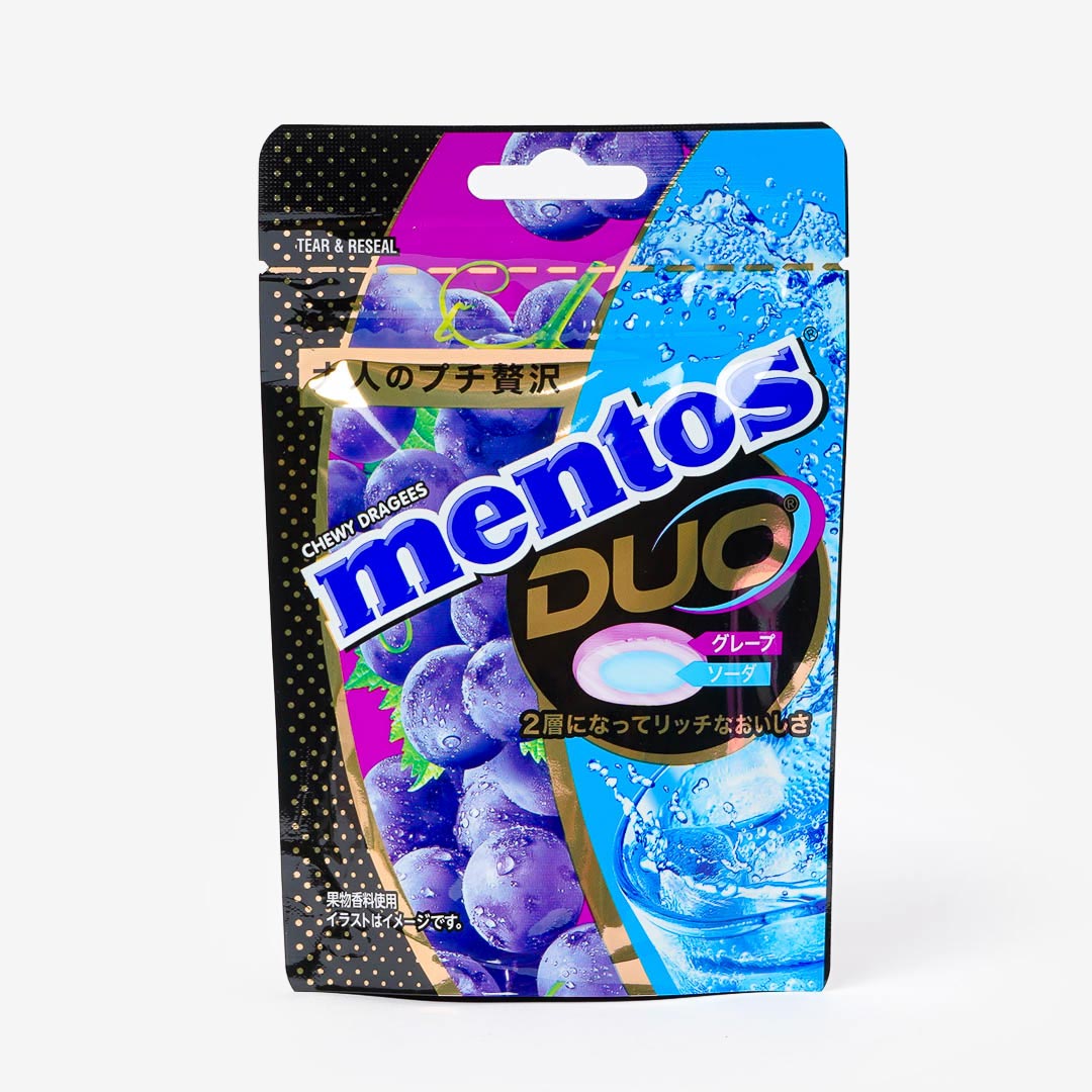 • A resealable pack of candy with a grape-flavored sugar shell and a soft soda-flavored inner part
