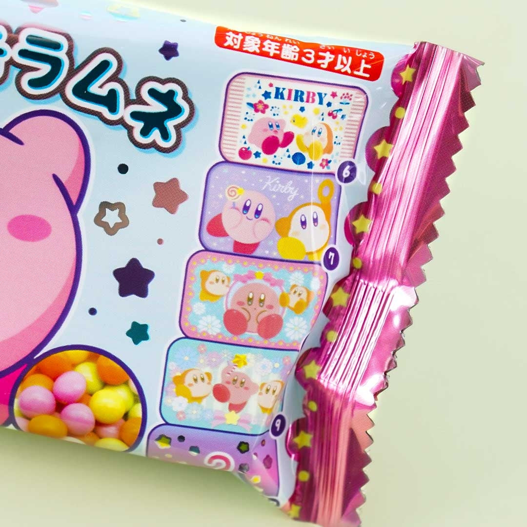 This pack of ramune candy features a print of Kirby having fun! It comes with a sliding can showcasing Kirby with friends. Surprise yourself with a random design selected from a set of 10 when you order.