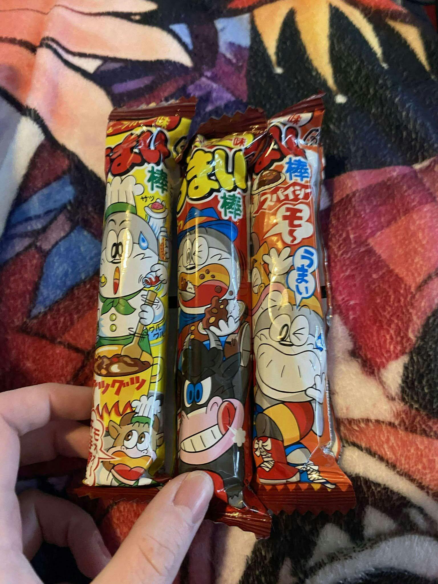 These crunchy puffy corn stick chips tastes just like beef curry to me. My only complaint is that these are sold individually in a set of 5, instead of keeping them together in their original packaging of 30. They go so fast, especially when shared.
