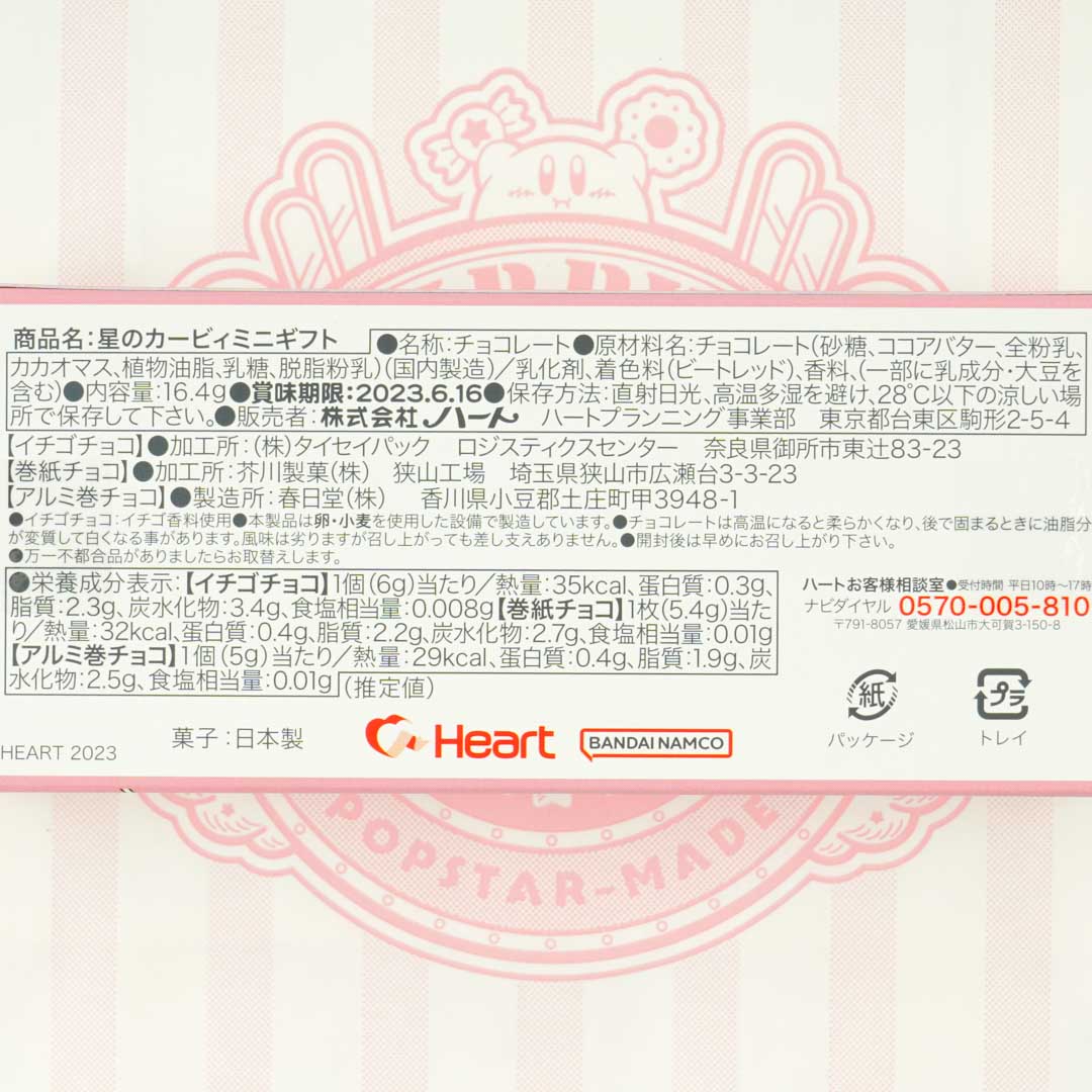 Gift your special someone with this box of mini chocolates! It’s decorated with cute prints of Kirby and contains three shapes of mini chocolates. The paper bag that comes with the set has kawaii pink and white stripes.