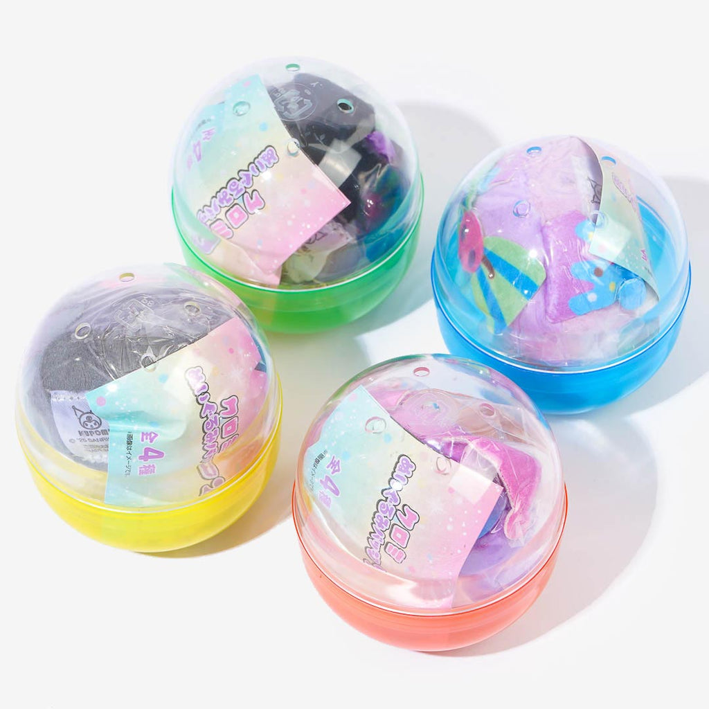Get a surprise Kuromi plush badge from this gachapon series! There are four super cute designs in total, featuring Kuromi in different themed outfits. It comes with a pin on the back so you can attach it to your bag, pouch, or jacket!