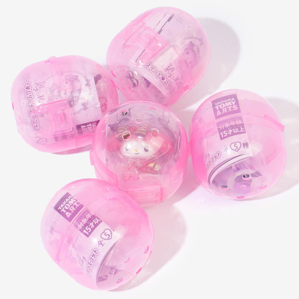 Add a dash of cuteness to your backpack when you attach this super cute charm! It features My Melody and Kuromi dressed in a kawaii Lolita-inspired outfit. This charm comes in a gachapon capsule so you'll get a surprise design!