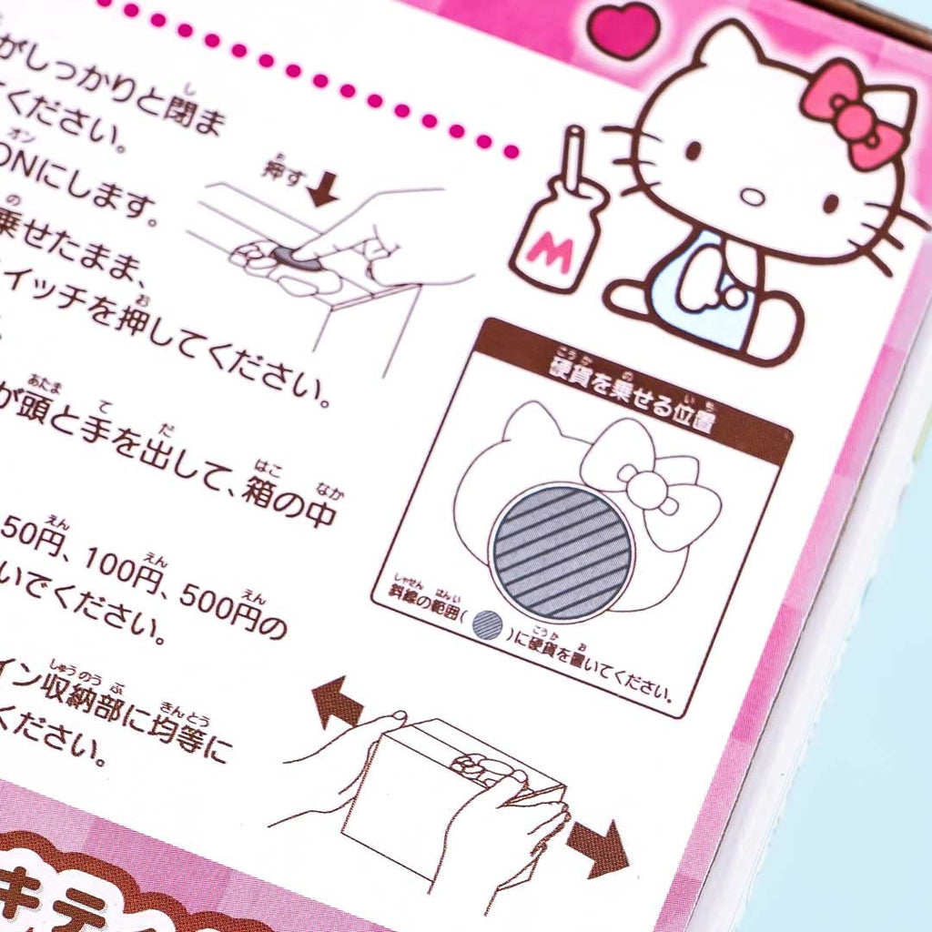 This cute Hello Kitty piggy bank toy is perfect for saving up money. All you need to do is place one coin on the piggy bank's plate and watch Hello Kitty pop up to keep your money in a safe place! Music plays whenever Hello Kitty appears to take your money away.