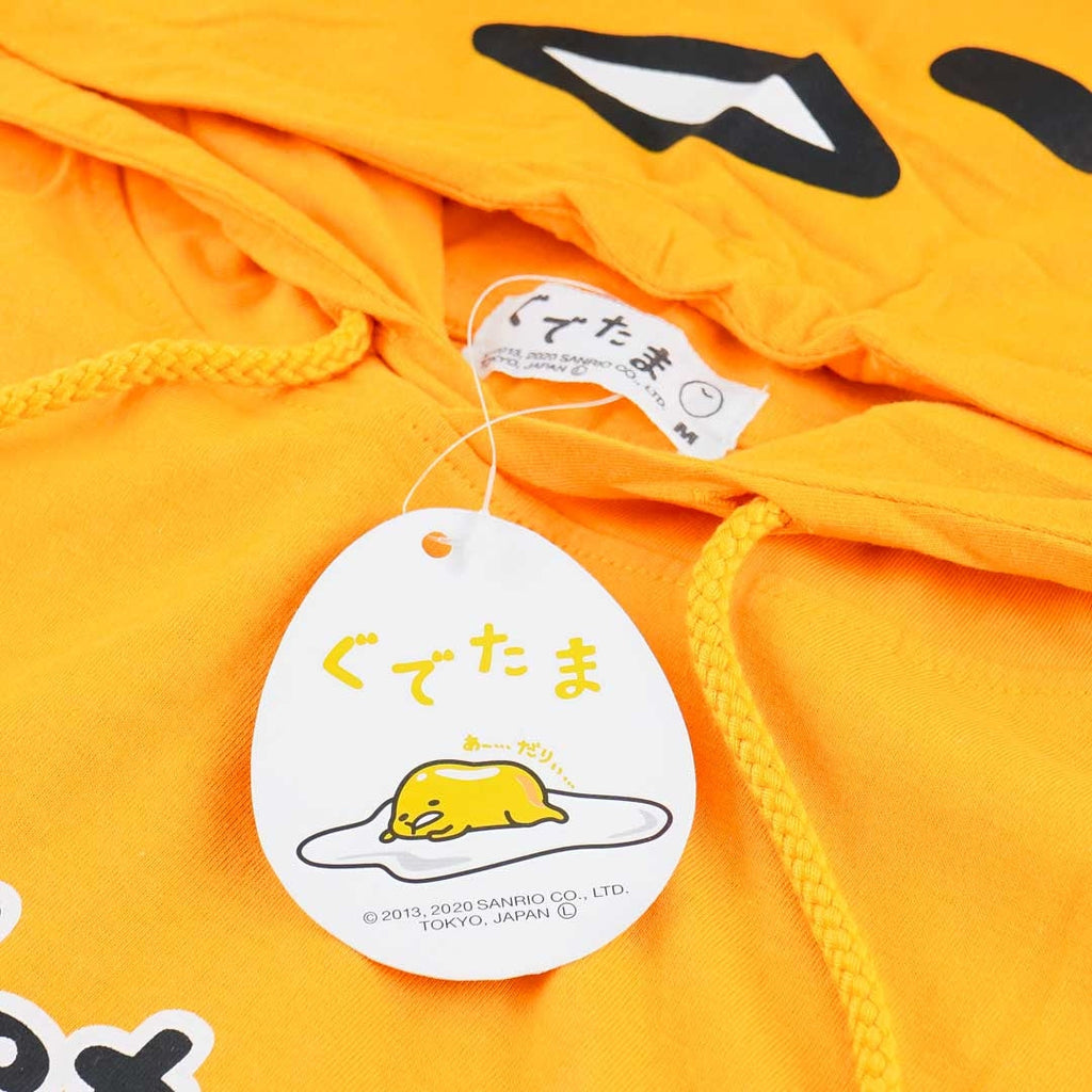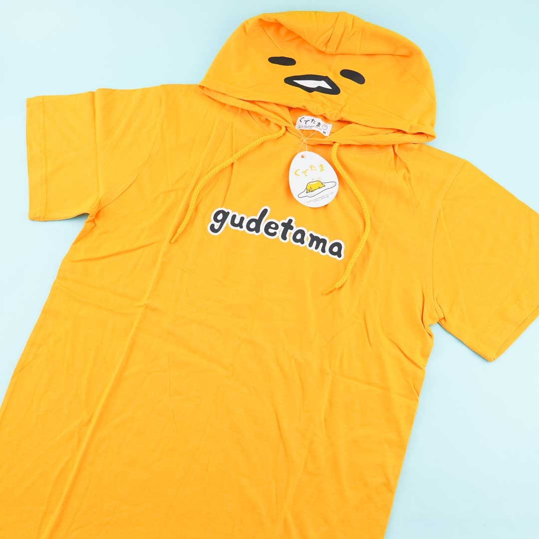 A kawaii short-sleeved hoodie top with a Gudetama head hood