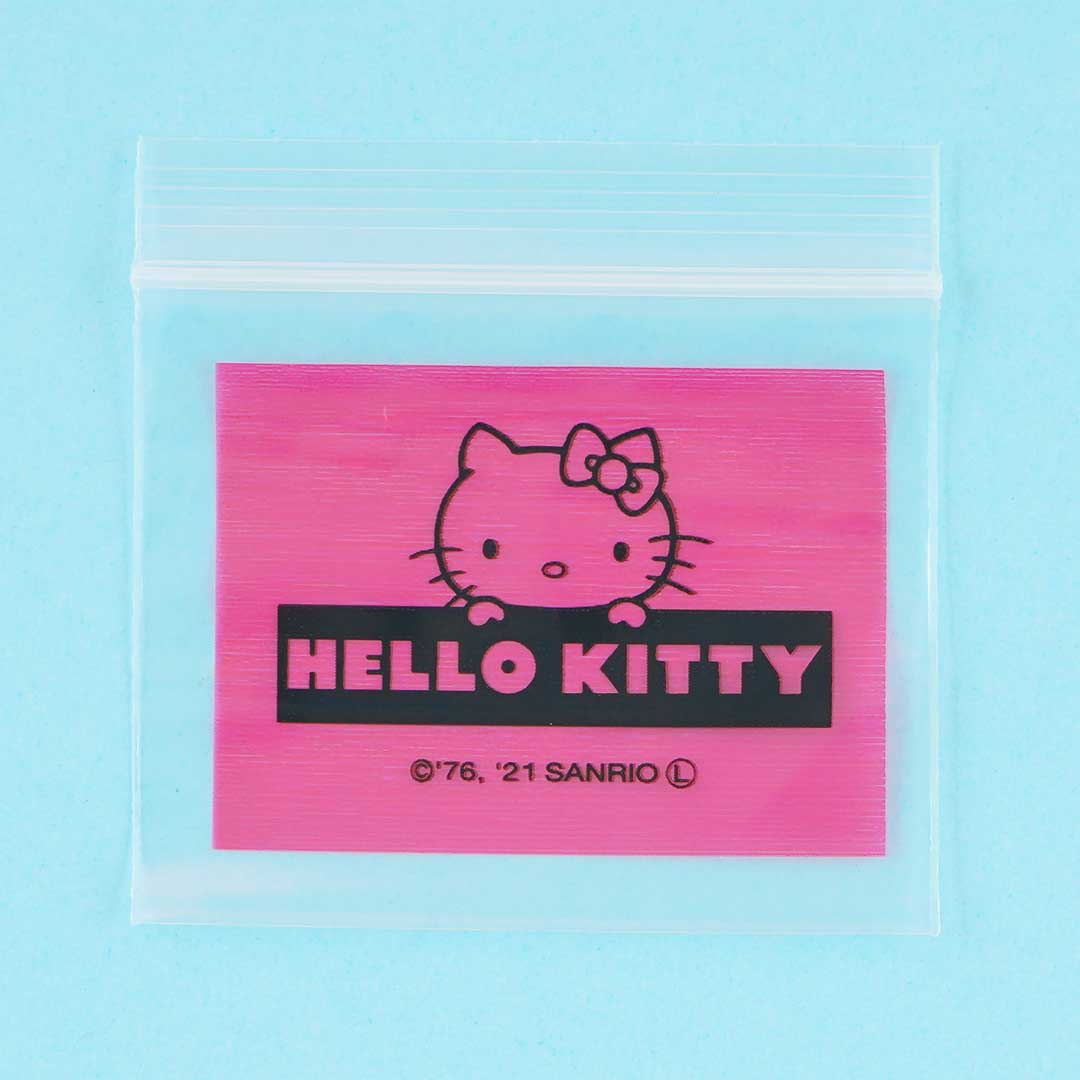 This super cute set of zip bags showcases a print of Hello Kitty peeking over her name. Use these A9-size zip bags to organize your things! You can also use it to bring along small toiletries during trips.