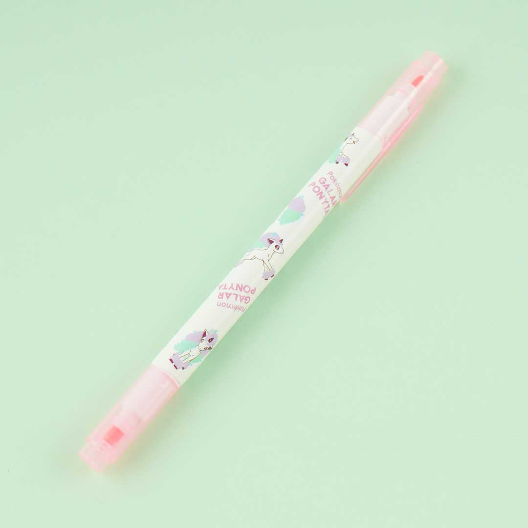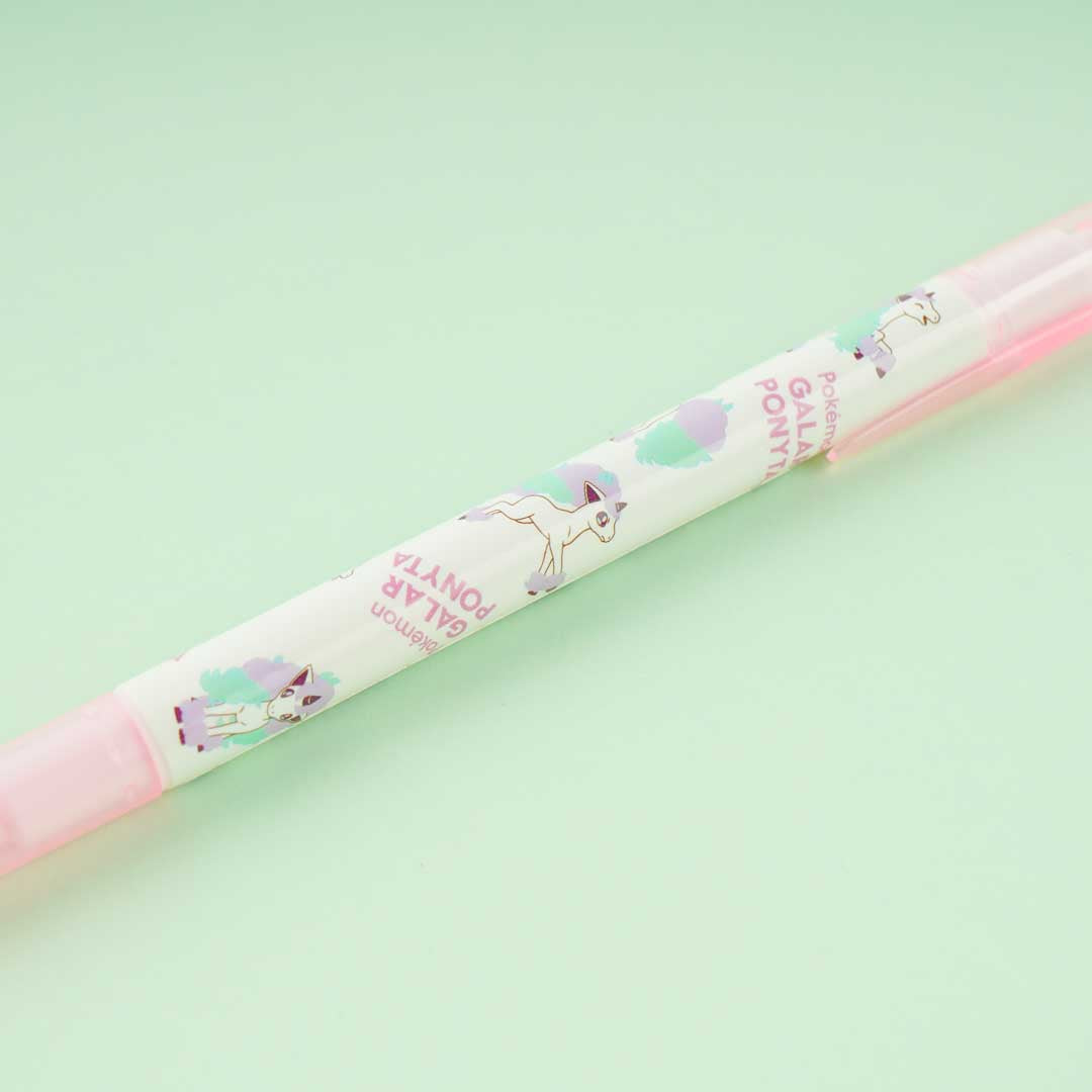 Have fun using this highlighter that has both thick and thin nibs as you decorate your scrapbook! The highlighter body is decorated with illustrations of the Galarian version of Ponyta.