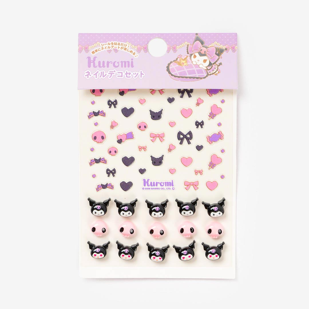 Add an edgy but cute twist to your nail art with these super cute nail stickers! The sheet includes tiny flat and 3D stickers featuring Kuromi, bows, hearts, and sweets. You can mix and match your own style!