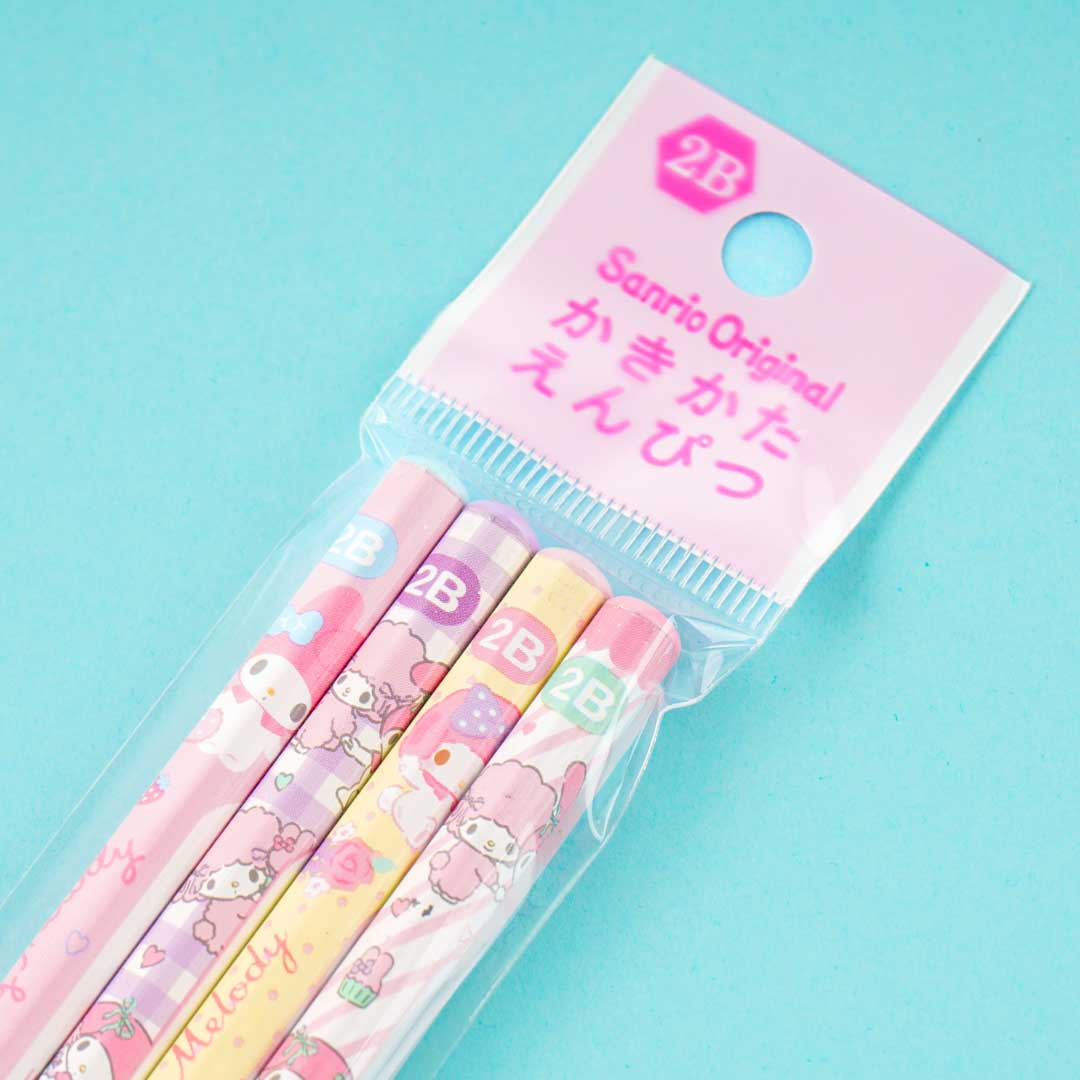 This super cute set has pastel prints of My Melody and includes four pencils. Write poems or sketch doodles using these pencils!