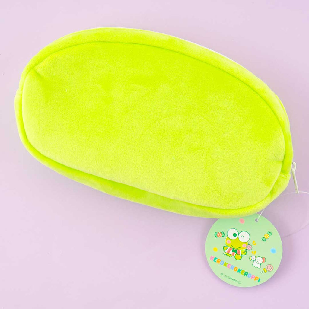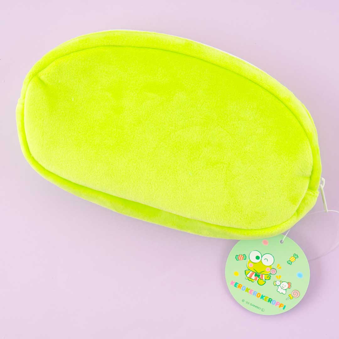 Use this bright green Kero Kero Keroppi face pouch to keep your favorite bracelets and necklaces while traveling! The roomy soft case has a pop-out bowtie.
