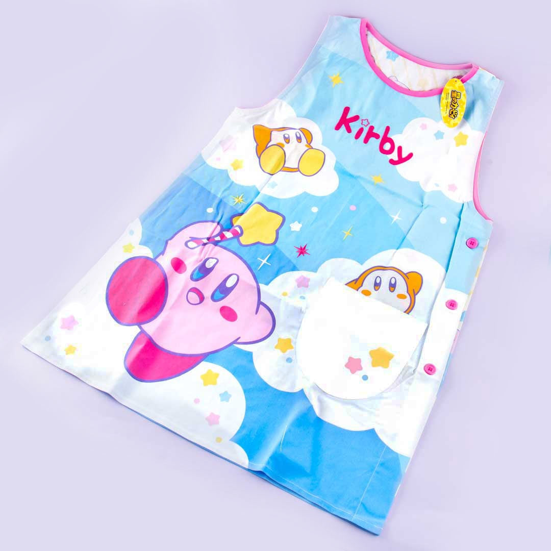 This kappogi or Japanese apron is covered with super cute illustrations of Kirby and Waddle Dees! A Japanese-style apron is commonly used on top of a kimono. It has one front pocket where you can place stuff while cooking!