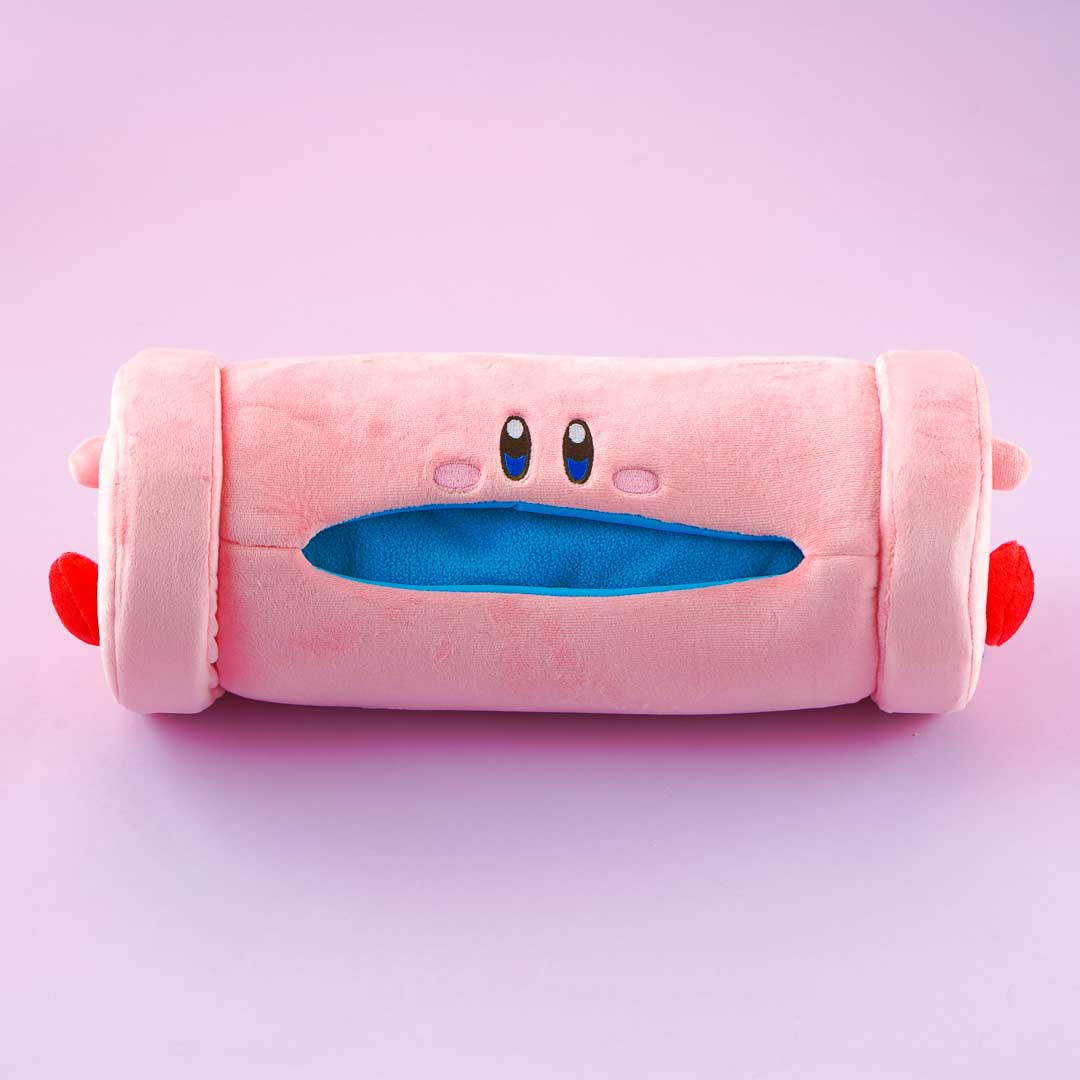 Make space in your stuffed toy collection for this pipe-shaped Kirby plushie! This cutie has a blanket inside covered in prints of Kirby taking on different shapes.