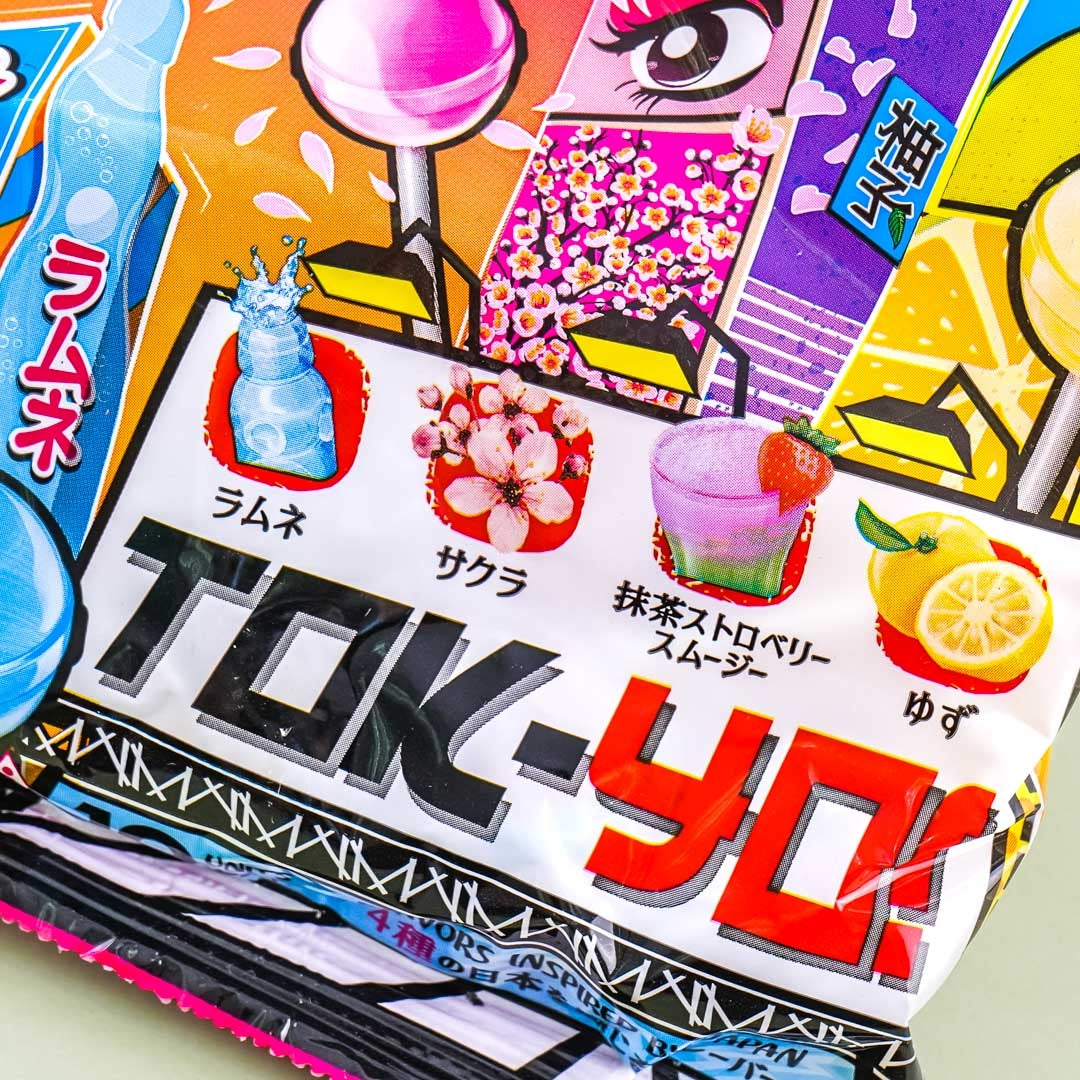 • A pack of lollipops with Japanese inspired flavors like ramune, cherry blossom, yuzu, and strawberry matcha smoothie