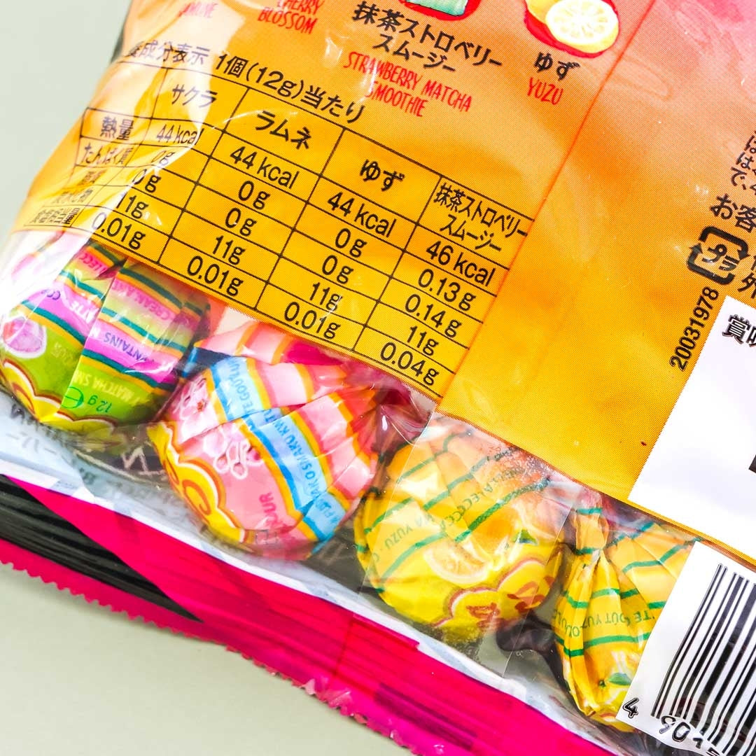 Indulge in this pack of lollipops! It has four different Japanese-inspired flavors that you can enjoy including ramune, cherry blossom, strawberry matcha smoothie, and yuzu.