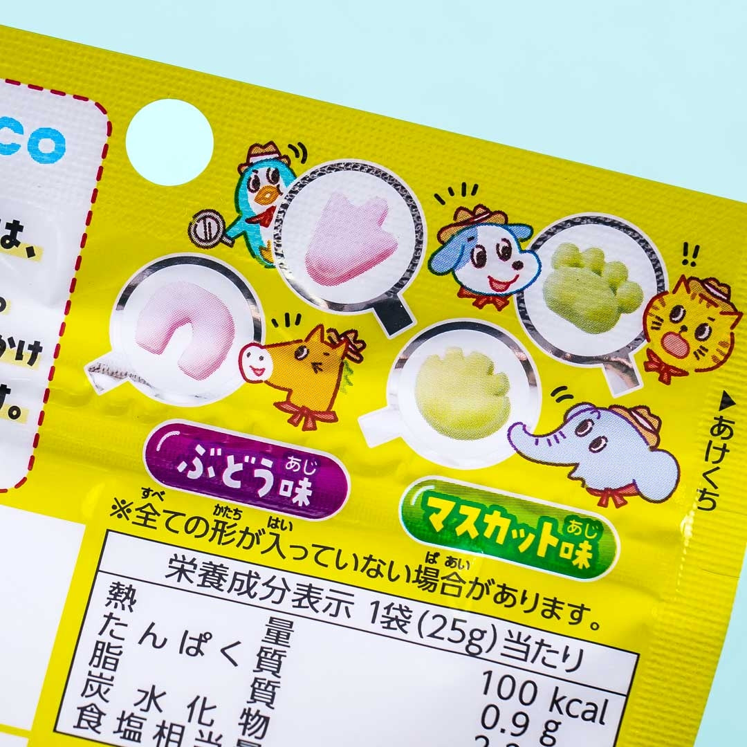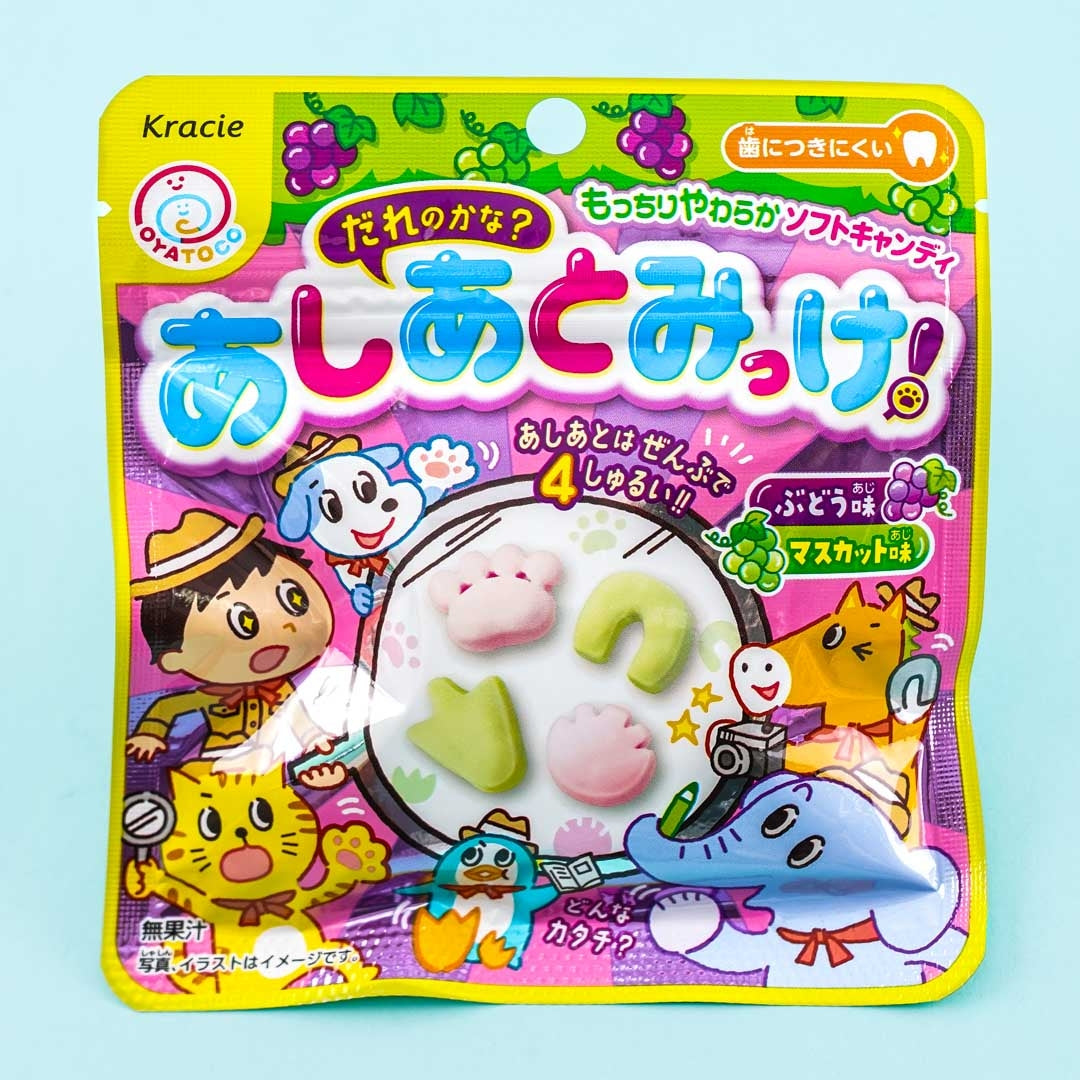 Guess which footprint is which as you try these sweets that are shaped like the feet of different animal characters! These soft candies come in both grape and muscat flavors. You can bring these treats with you as they come in a handy resealable pouch.