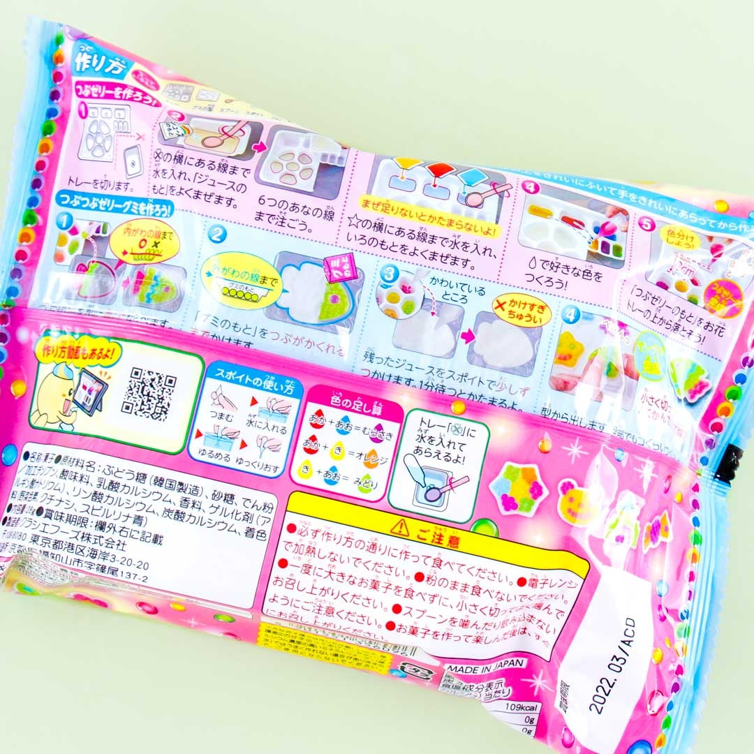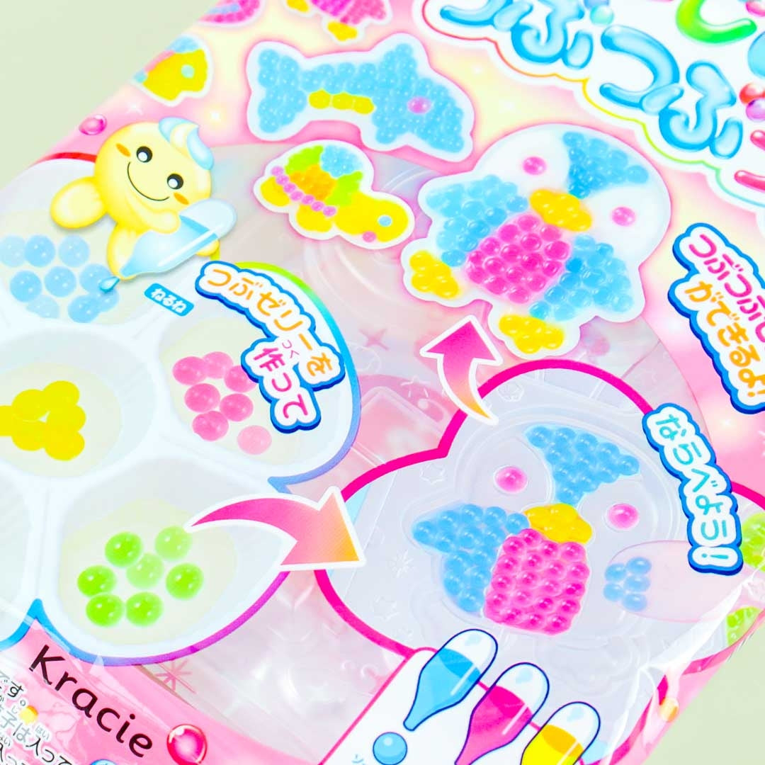 Dissolve the soda, pineapple, and grape-flavored jelly powders to form colorful tsubu-tsubu or dots! Use the dropper to suspend these gummy orbs as they form in water. You can create different shapes with these tiny rainbow candy dots by placing these on the provided mold.