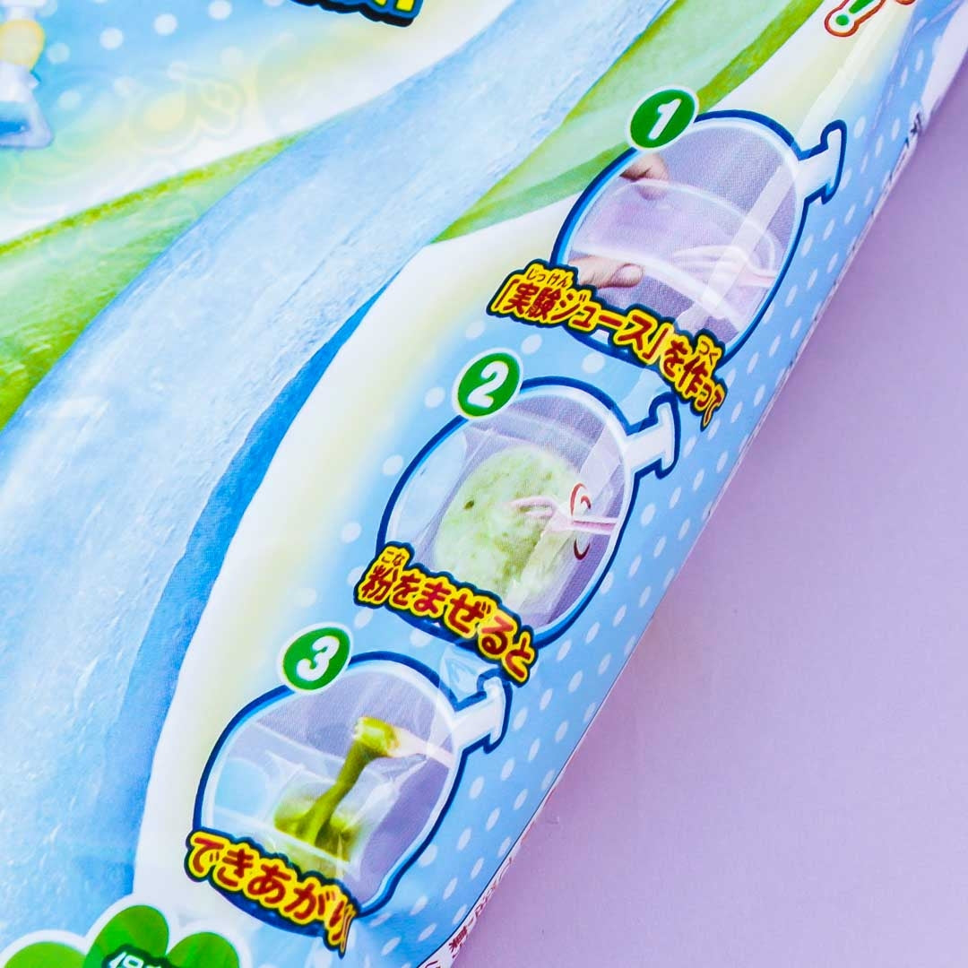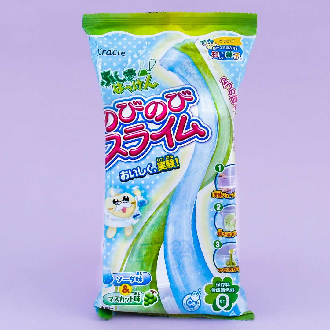 First of all this candy is so, so easy to use! It has the most simple instructions but you can play with it for a long time before being unable to resist eating! It does have a mucus-like texture, but it’s more like foam slime if you’ve ever played with that. The muscat flavor is delicious and the soda flavor tastes just like ramune. When you mix them together it tastes like sprite! It’s a good price and arrived timely, I would definitely recommend it for a fun DIY candy.