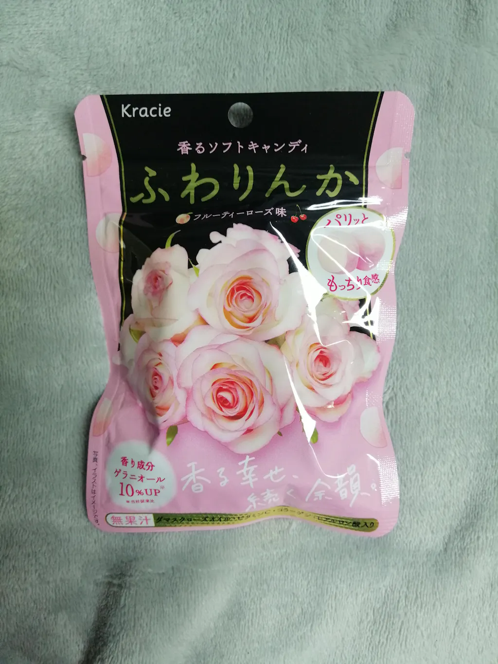 Tiene una cobertura crujiente y un centro suave, el olor y sabor a rosas es perfecto. Lo recomiendo.