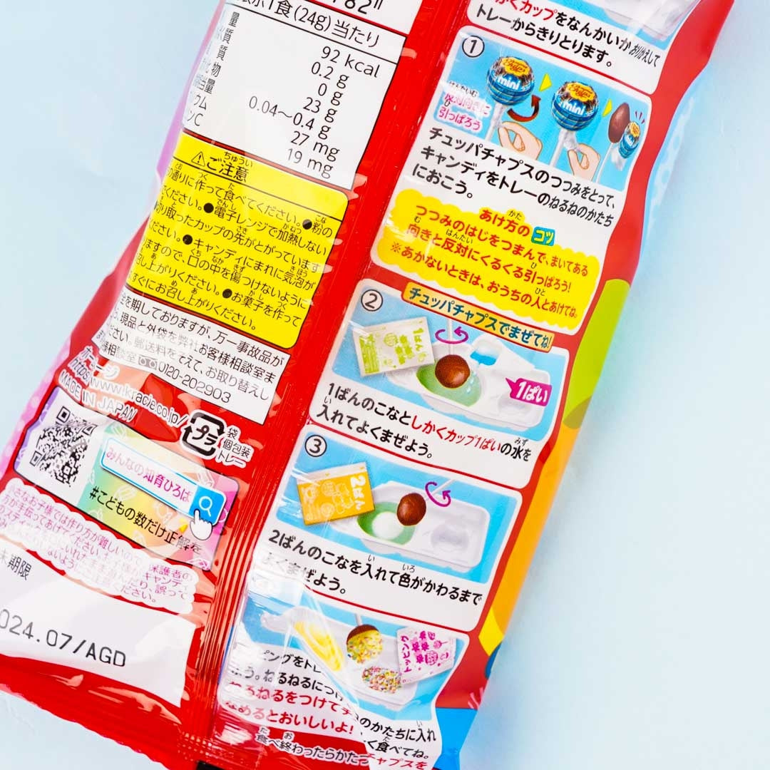 Have a blast mixing your Nerunerunerune candy by using a mini Chupa Chups lollipop! Youll definitely have fun with this DIY candy kit as you combine the lemon-flavored cream candy and the cola-flavored lolly to transform it into a lemon-cola candy pop! The set includes flavored powder sachets, candy dots, a mold, and one small-sized Chupa Chups lolly.