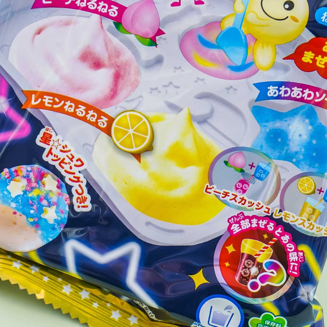 Have fun mixing and matching peach and lemon-flavored Neruneru candies using this DIY kit! You can also add a soda-flavored sauce that fizzles when water is added! This candy set does not contain any artificial color or preservatives so its safe even for children and it even contains calcium. The pack also includes the necessary tools, instructions, and ingredients.