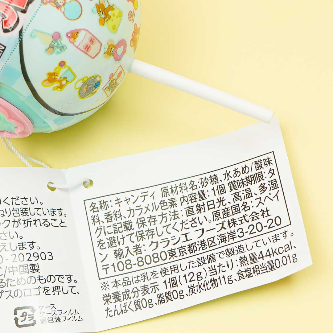 Satisfy your sweet cravings with this yummy cola-flavored lollipop! It also comes with a surprise treat a charm featuring the iconic animated duo, Tom and Jerry! By ordering, youll get a lollipop plus a random charm with a cloth loop out of twelve possible designs.