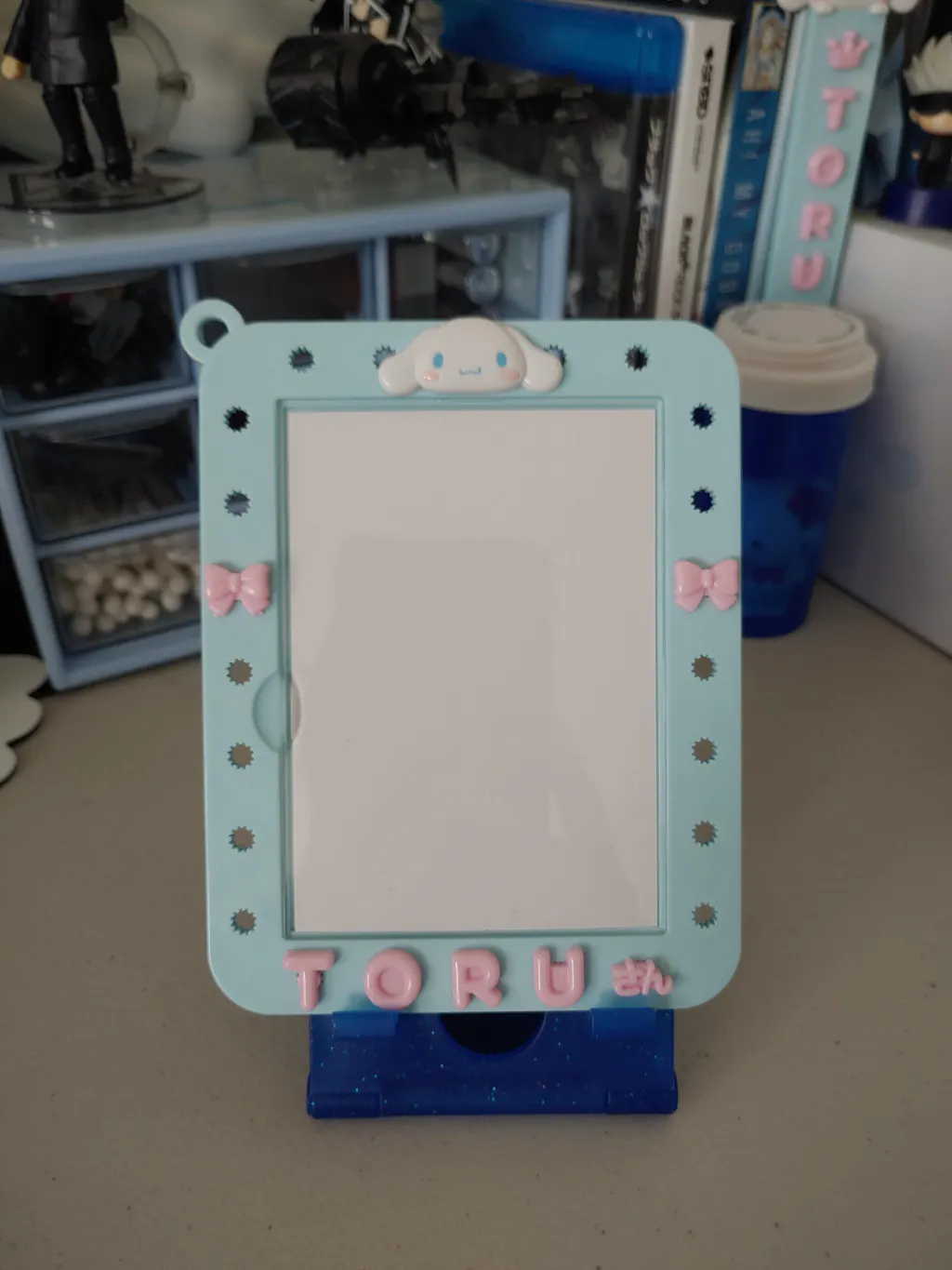Love the Maipachirun series of goods by Sanrio and am slowly amassing myself a collection of the Cinnamoroll goods. This one comes with a gold chain that you can take off for a more static display. The only thing to note is that in the display photo, the peg hole that the Cinnamoroll charms is in is much looser than all the other peg holes so your charms may fall out of you use that one for anything but the Cinnamoroll face charm.