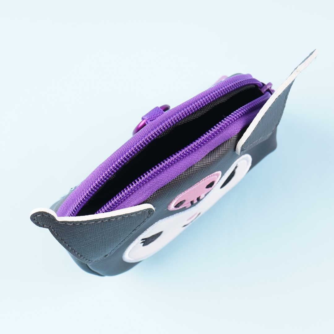This kawaii die-cut Kuromi mini pouch is perfect for storing your trinkets. It has a zipper closure and a metal clip that you can use to take it anywhere you go! You can also use it as a pass case thanks to the card slot at the back of the pouch.
