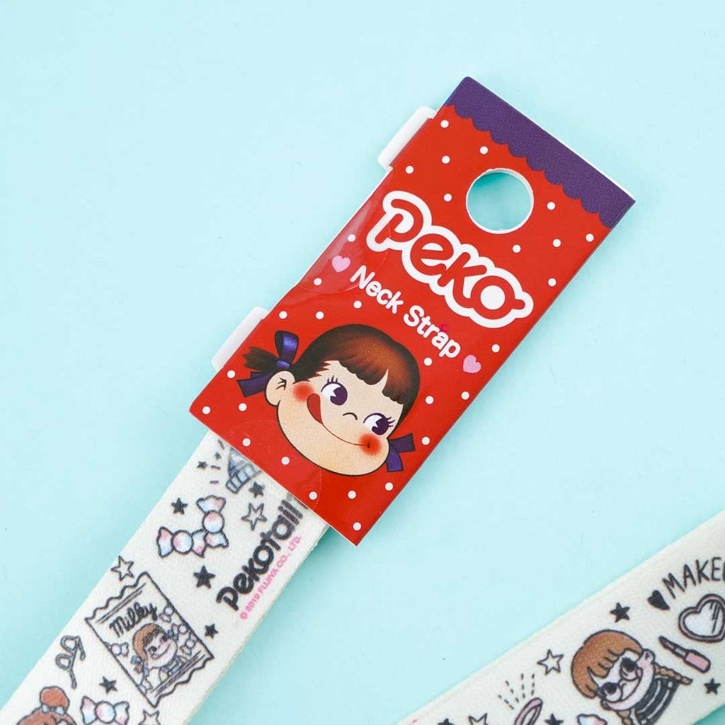Use this super cute lanyard to bring your ID. It's covered in prints of Peko-chan dressed up fashionably! It has an adjustable strap, a mobile phone loop, and a metal clip.