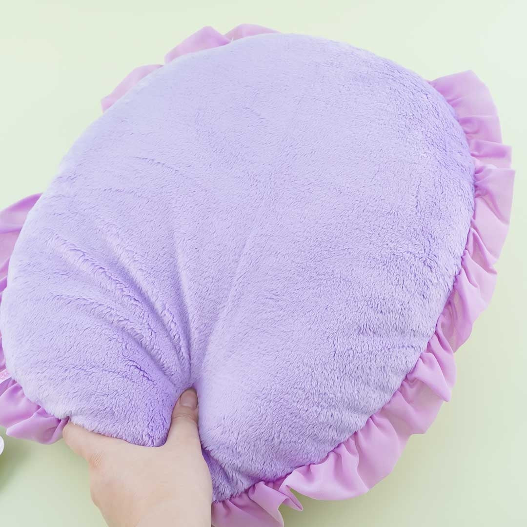 Add a dose of cuteness to your sofa with this kawaii lacy round cushion. It features a print of the Little Twin Stars riding a unicorn!