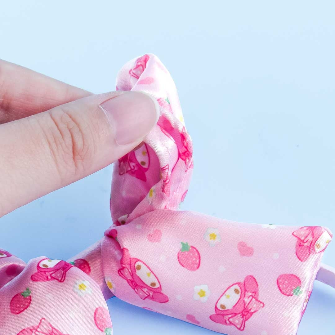 Kawaii-fy your hair with this super cute pink headband! It has a pink ribbon featuring My Melody and strawberries. The ribbon has an inner wire so you can adjust it easily.