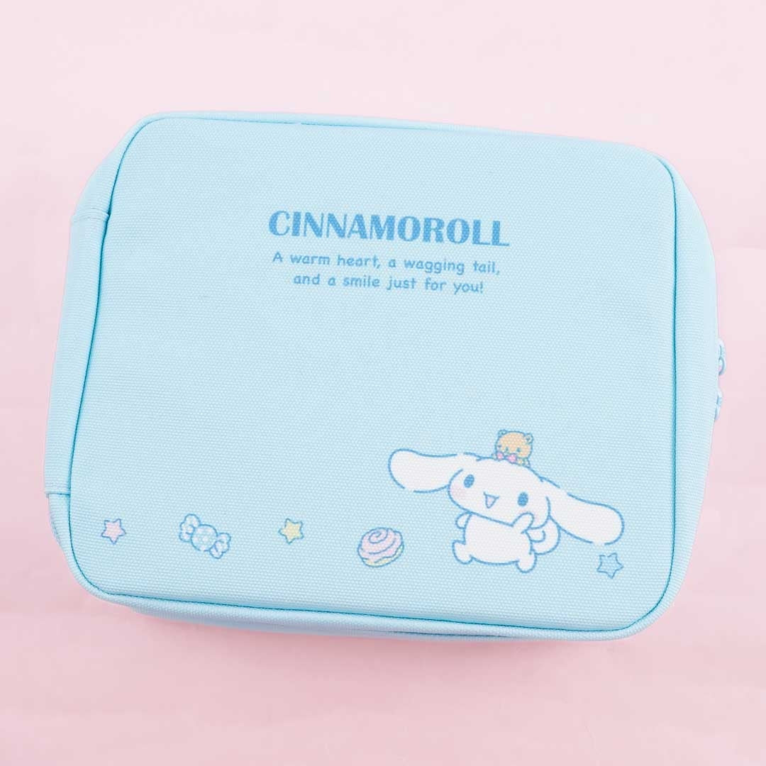 Organize your desk by placing your small notepads, paperclips, highlighters, and other office supplies inside this special storage case that can stand on its own in two various ways! It’s decorated with illustrations of Cinnamoroll having lots of fun with his newfound friend — a tiny bear cub! This kawaii case comes with dual zipper closures and multiple pockets as well.