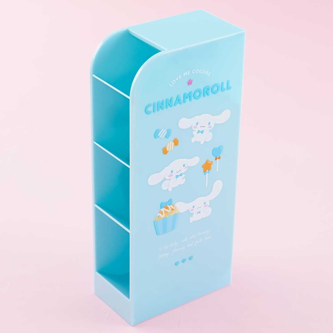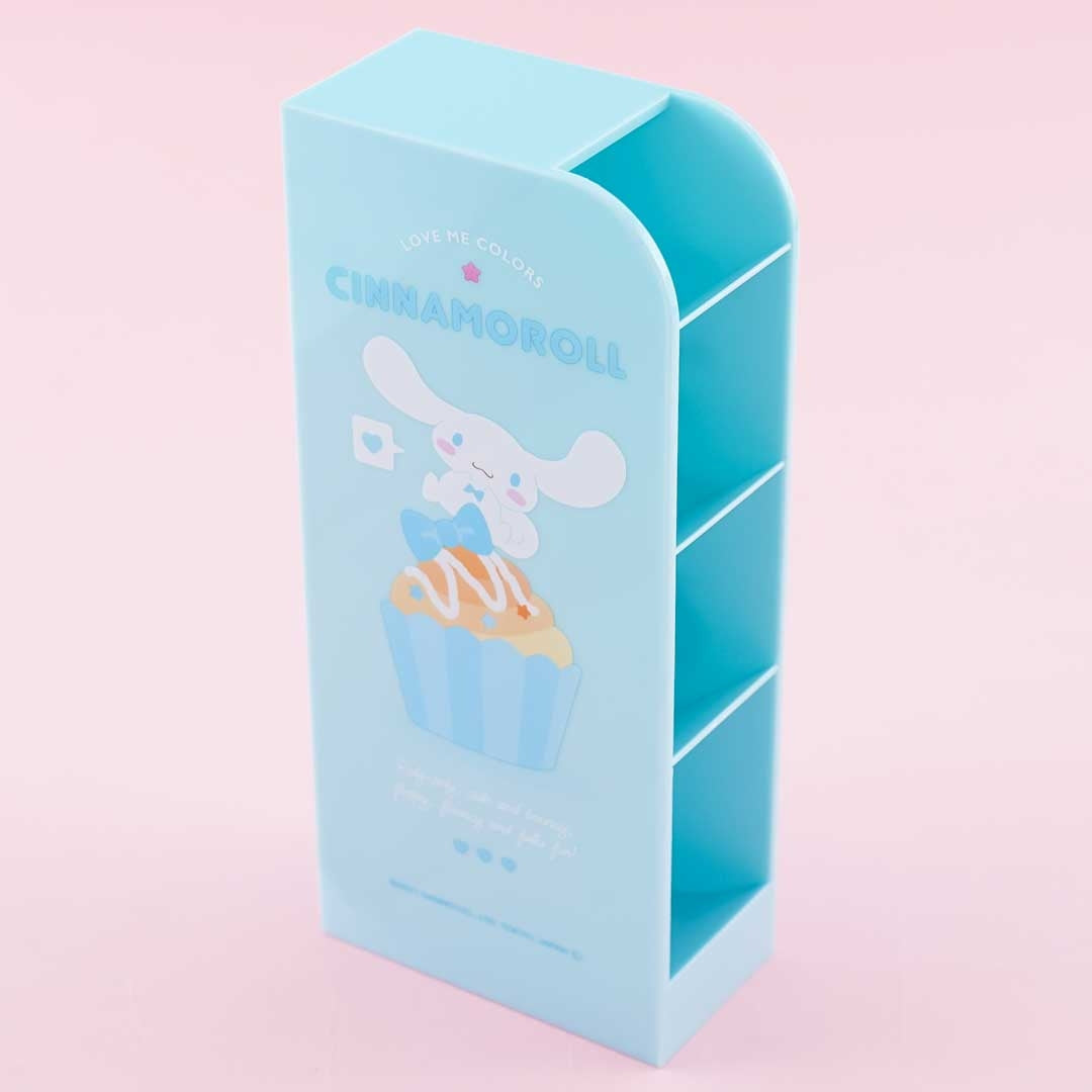 Organize your makeup brushes by sliding them on the four slots of this super cute tower stand! Its made of durable plastic and is decorated with illustrations of Cinnamoroll with his fave dreamy sweets like lollipops of different shapes and cupcakes!