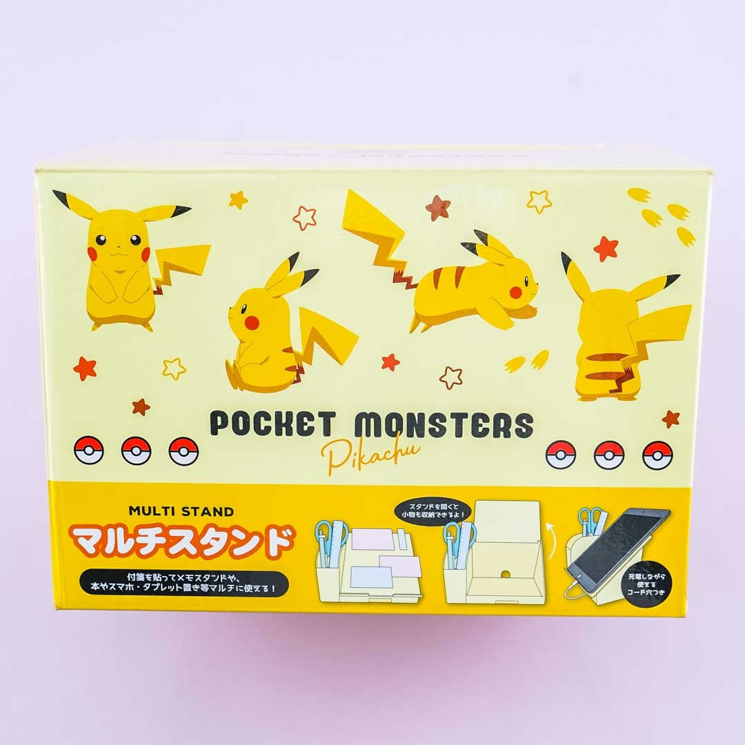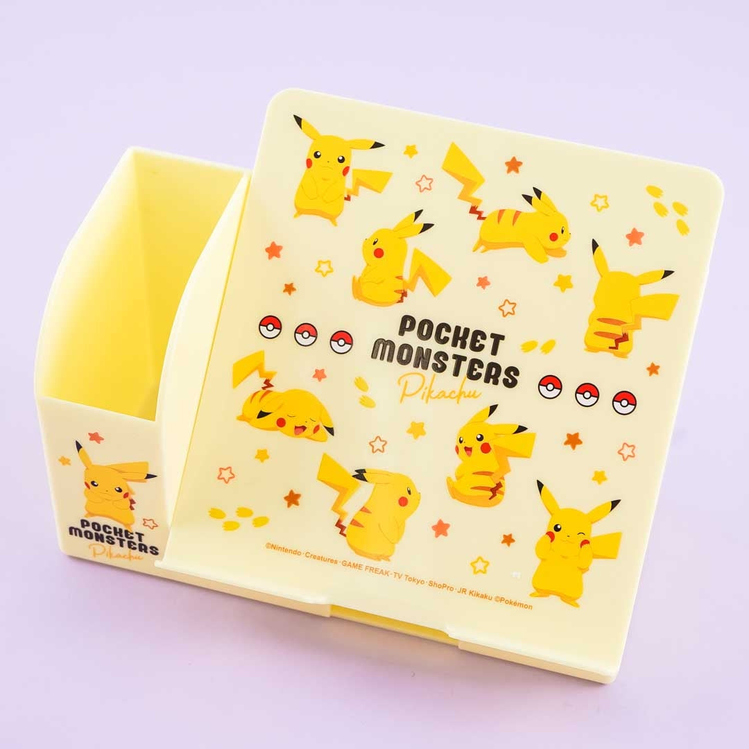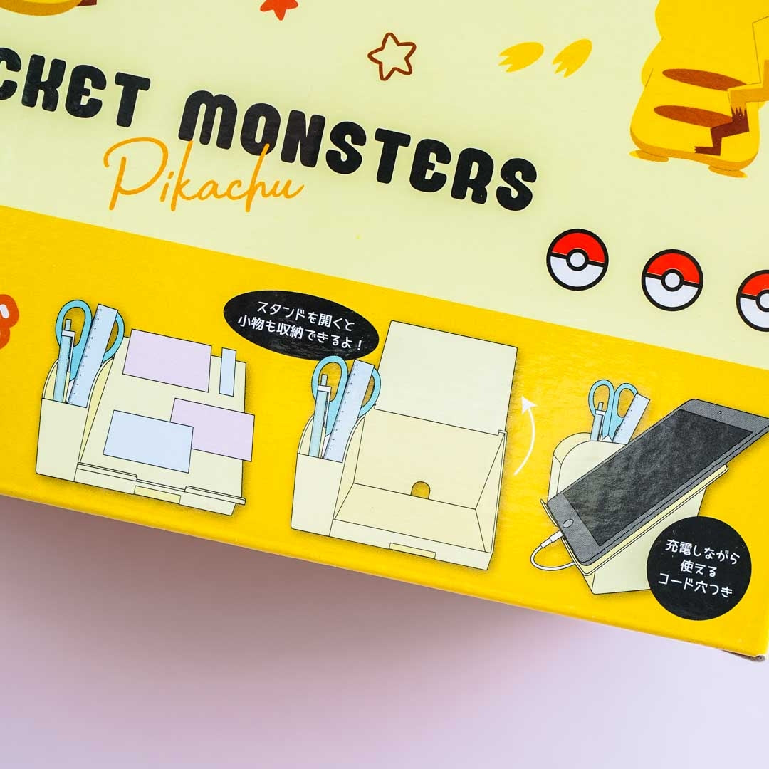 Organize your pens, erasers, and everything on your desk with this cute desktop organizer! It's decorated with prints of Pikachu making different poses. You can use the slanted part of the organizer as a smartphone stand. This stand even has a cord hole for your phone cable.