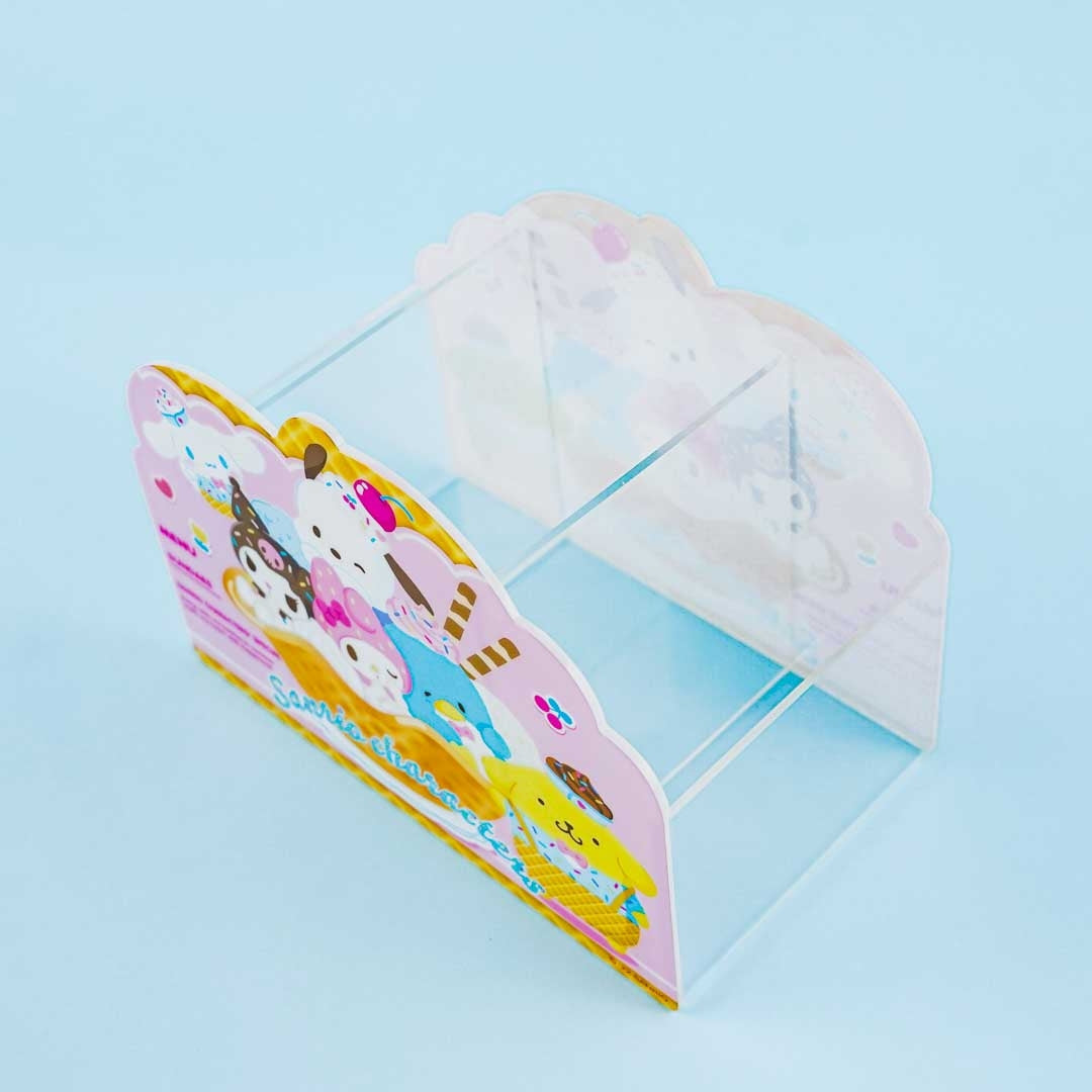 Keep your pens and markers organized by placing them on this super cute stand! Its made of die-cut acrylic and is decorated with prints of the Sanrio Characters as on top of a giant sundae.