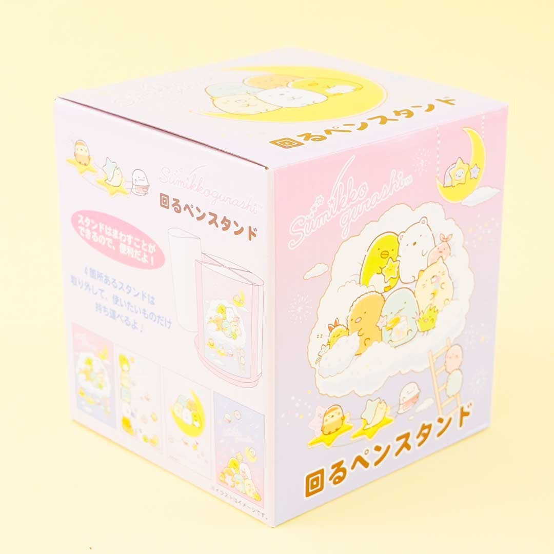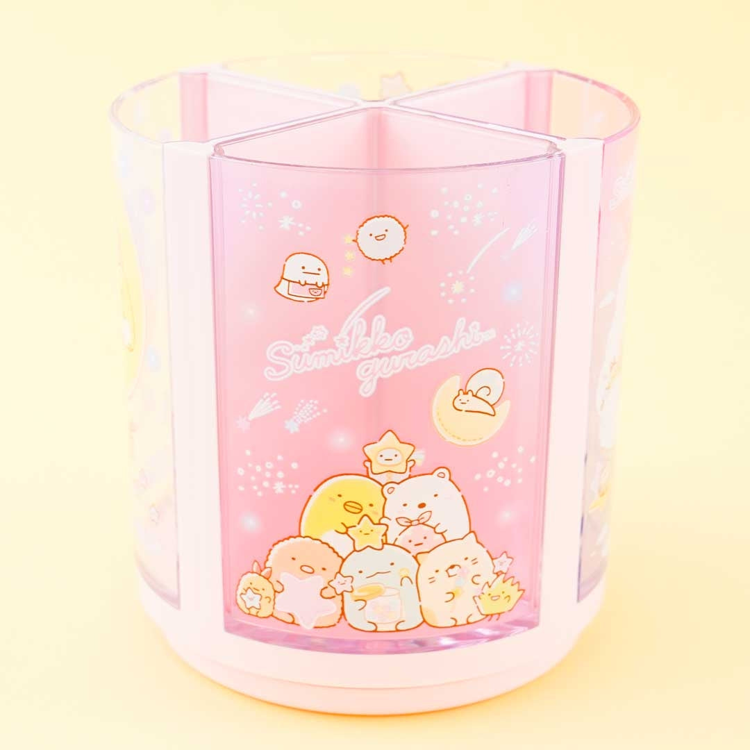 A super cute rotating pen stand illustrated with the Sumikko Gurashi underneath the stars