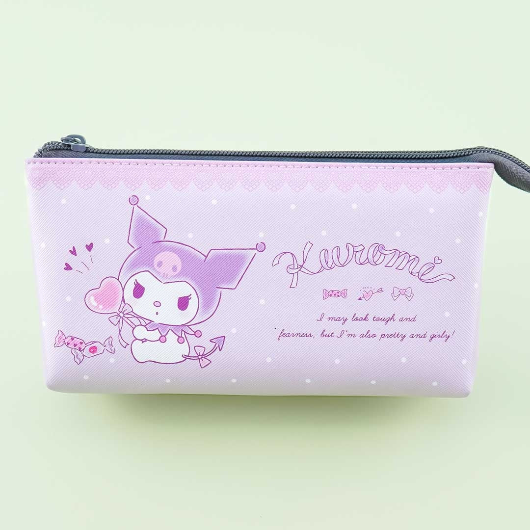 Organize your writing tools inside this kawaii case! It’s made of faux leather and has prints of Kuromi with a heart-shaped lollipop and other candies! The pen case also comes with three pockets and a zipper closure.