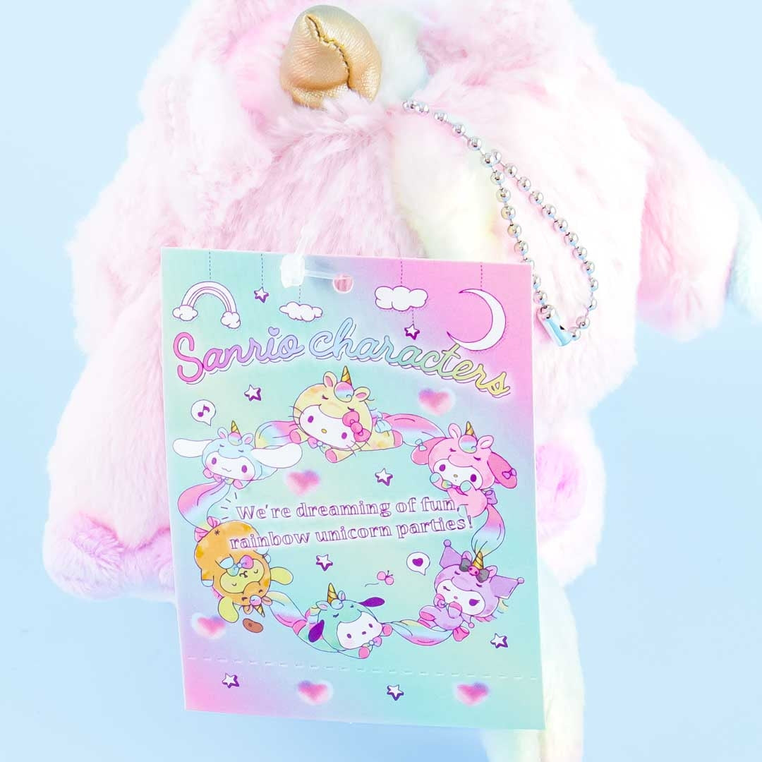 Make this kawaii My Melody character plushie that’s wearing a unicorn onesie your new snuggle buddy! You can also attach this fluffy mini cutie with a removable ball chain on your favorite backpack.