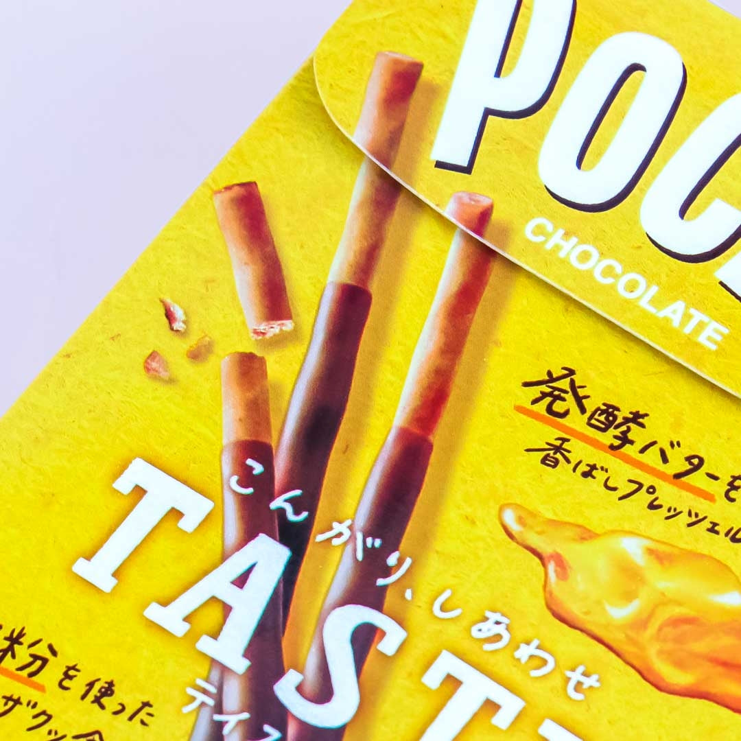 • A box of thin pretzel sticks coated with roasted milk and fermented butter-flavored chocolate