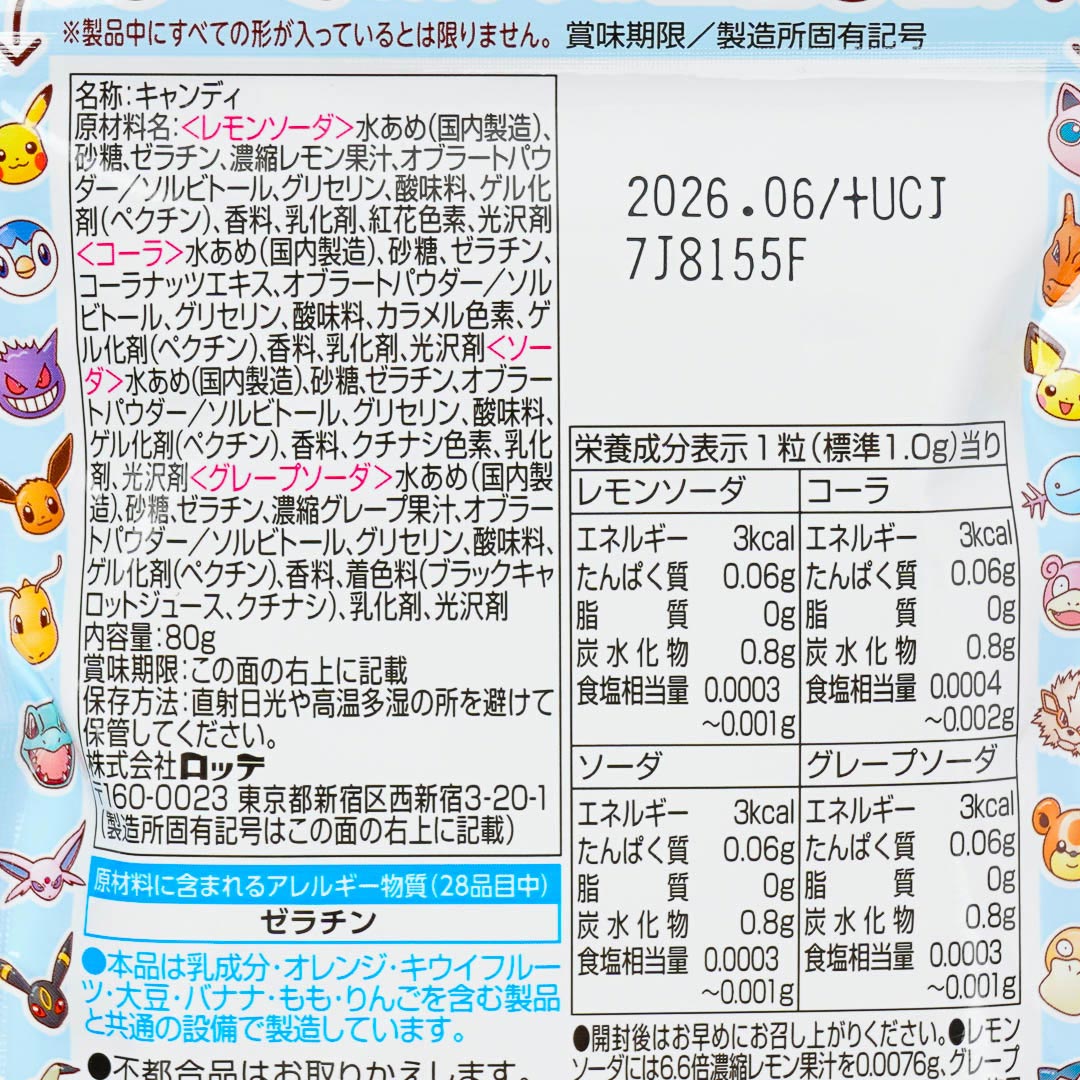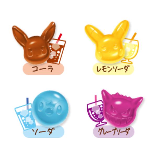 • Features 4 characters with corresponding flavors: lemon Pikachu, cola Eevee, clear soda Piplup, and grape Gengar