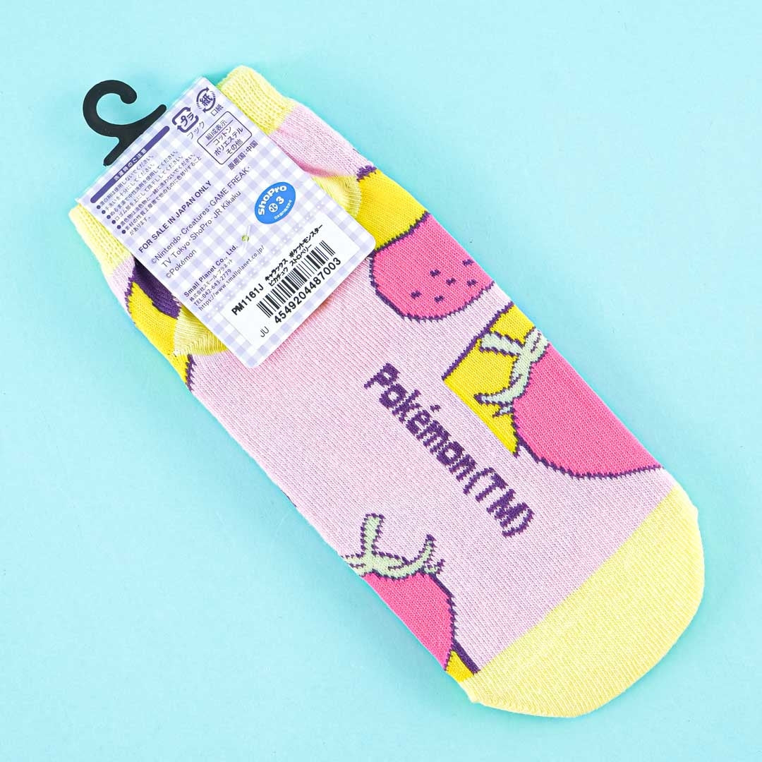Don't forget to put on these super cute socks before heading out! They're decorated with prints of Pikachu and strawberries!