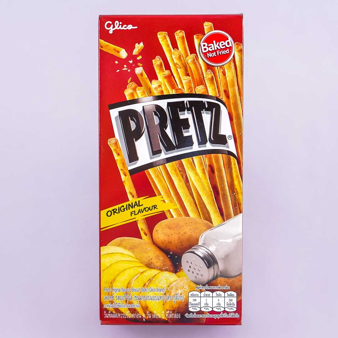 These biscuit sticks are made with real potatoes! This original potato flavor is exclusive to Glico Thailand’s line of Pretz. The biscuit sticks have a delicately salty taste and a crispy texture. They come in a closable box that you can take with you wherever you are.