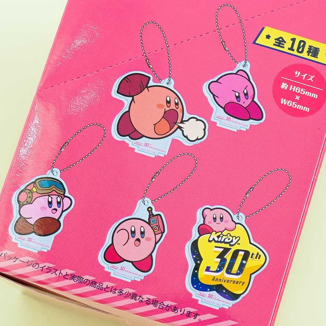 Show off your love for all things kawaii with this super cute charm celebrating Kirby's 30th anniversary. It features a print of Kirby doing a pose! You can attach it to your bag with its removable ball chain. This charm can also be turned into a cute table decor thanks to its stand. Surprise yourself with a random design when you order.