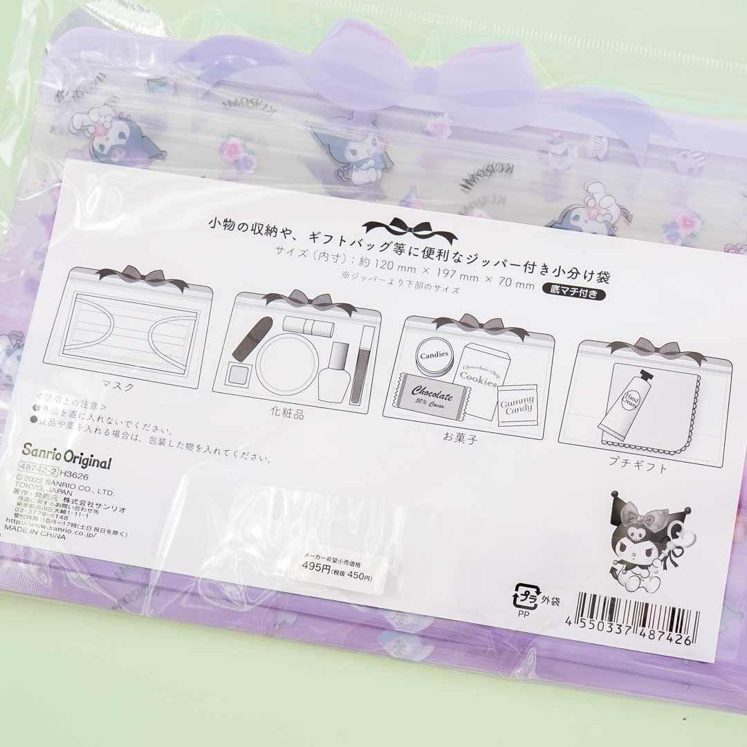 A super cute set of resealable storage bags featuring Kuromi and her favorite items